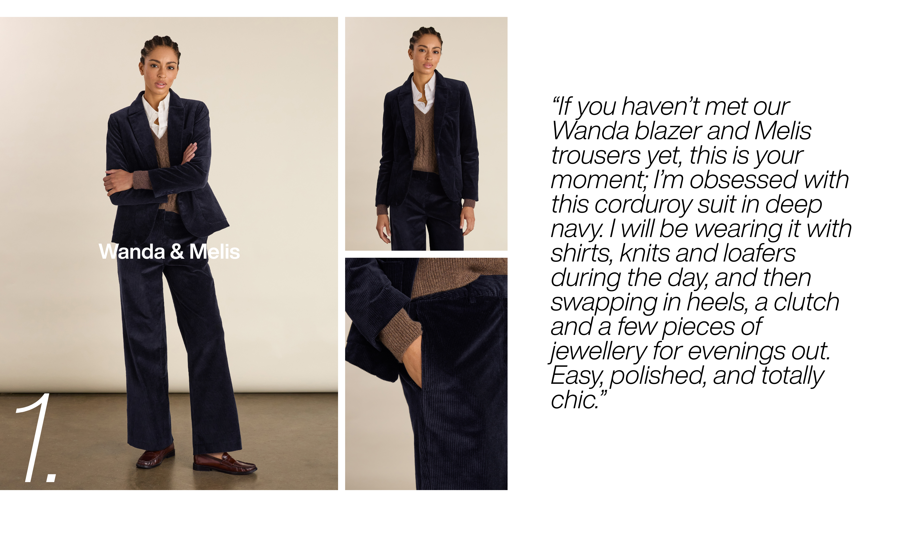 Wanda Organic Cotton Corduroy Blazer £249 View Product Melis Organic Cotton Corduroy Wide Leg Trousers £149 View Product
