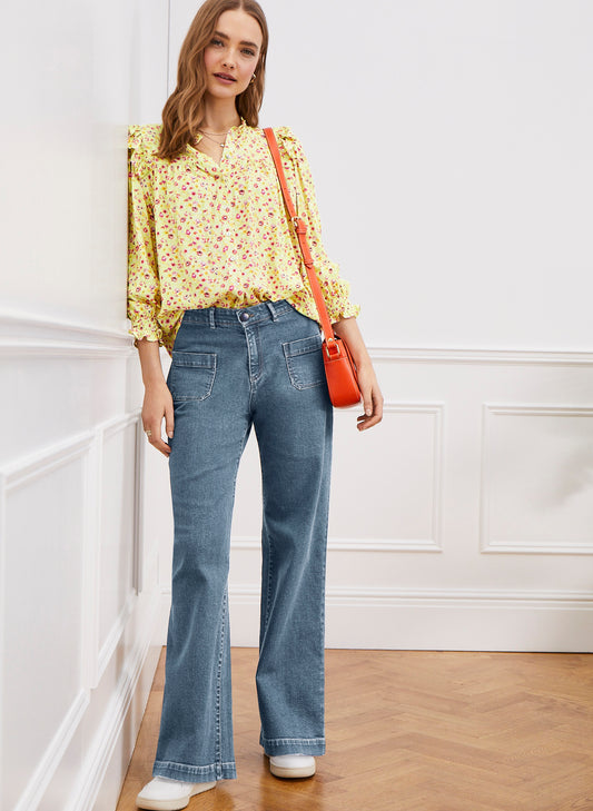Organic Stretch Cotton Pocket Wide Leg Jeans