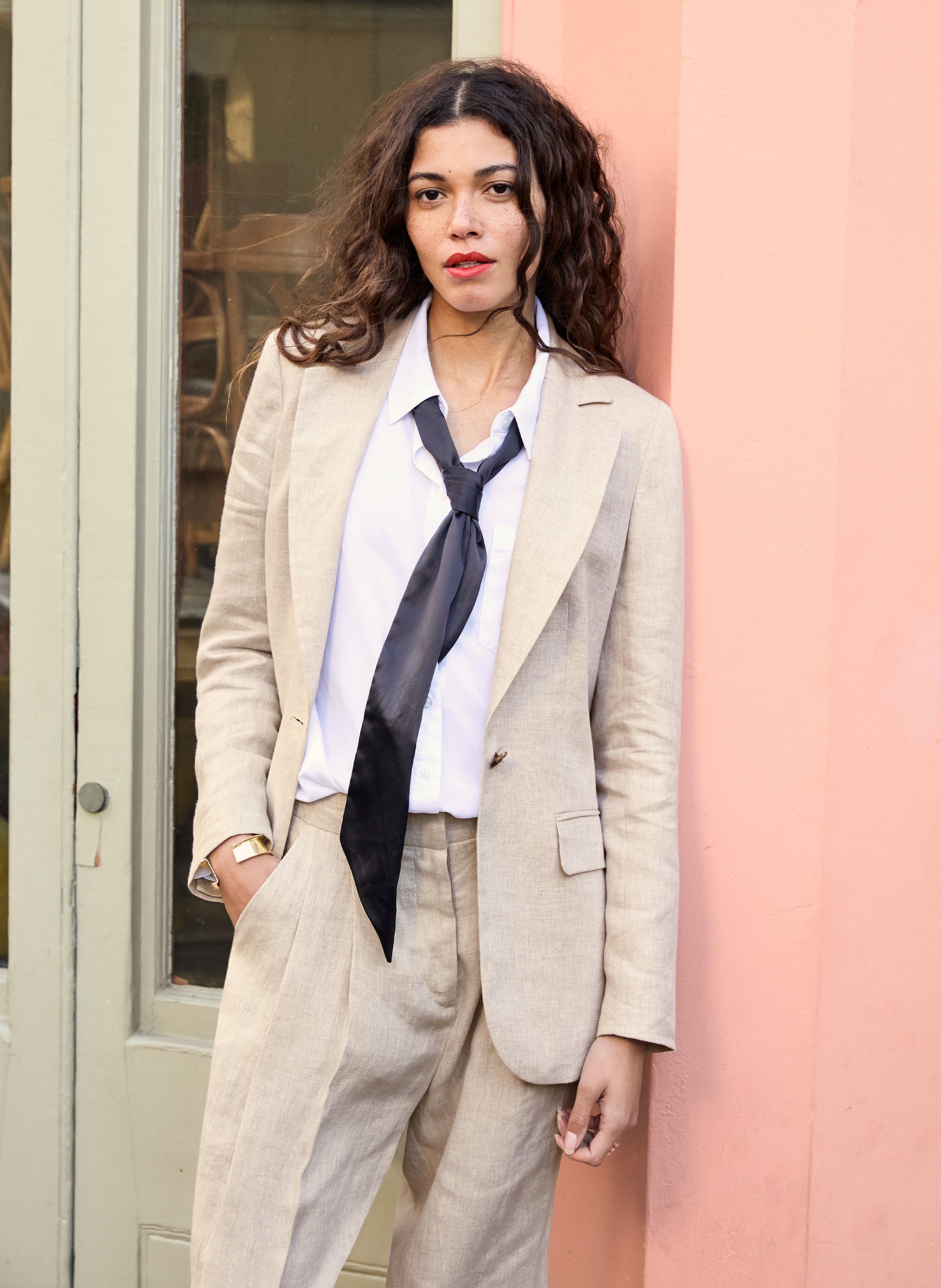 Summer tailoring is made easy with a linen blazer. Tracy is single-breasted and comes in a long-line, relaxed fit for contemporary styling. Whether it’s with a skirt for work, or paired with jeans and a tank for brunch, it’s super-versatile. We love it with the coordinating Henrietta Linen Trousers for the most effortless suit of the season.