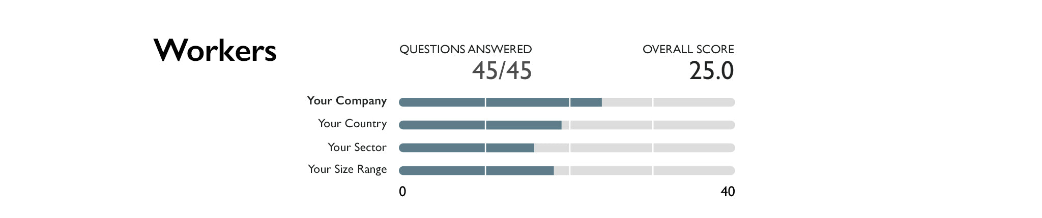 The Workers Impact Area evaluates a company's contributions to its employees' financial security, health and safety, wellness, career development, as well as overall engagement and satisfaction.