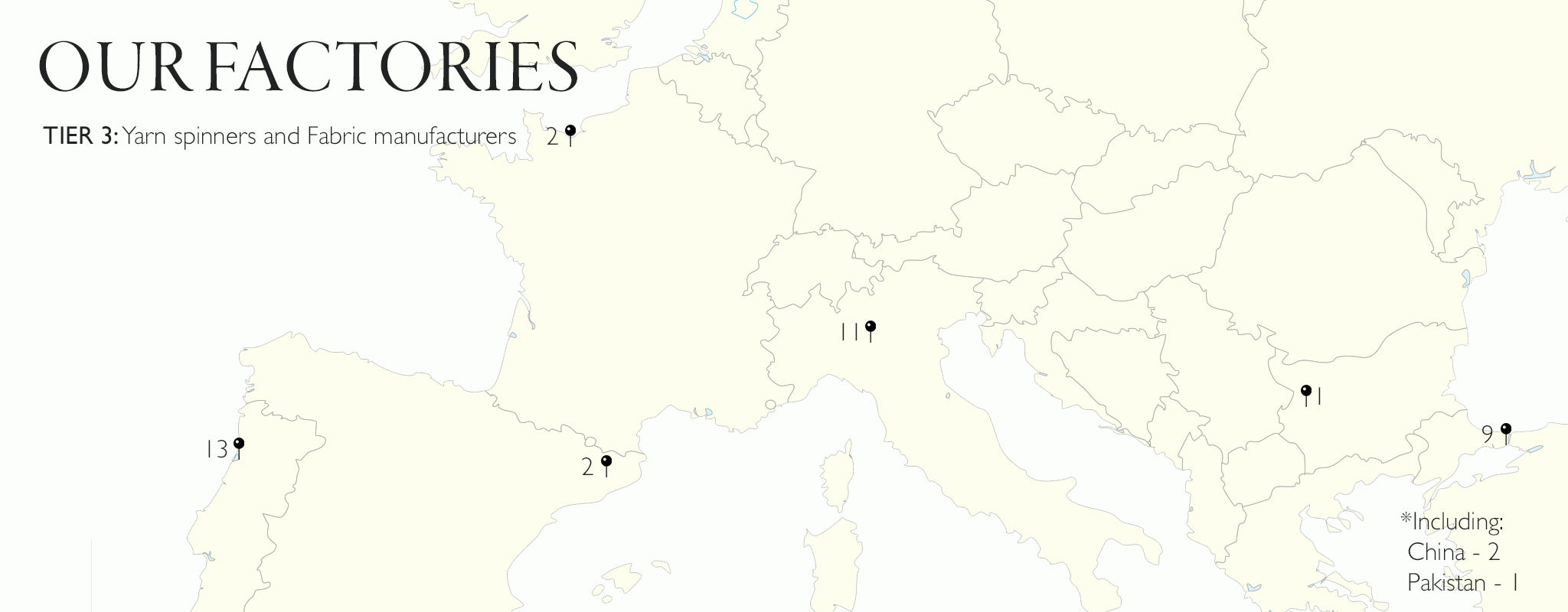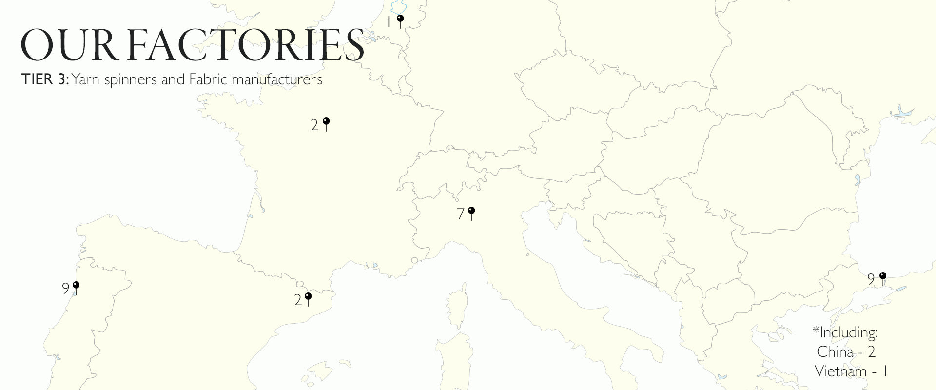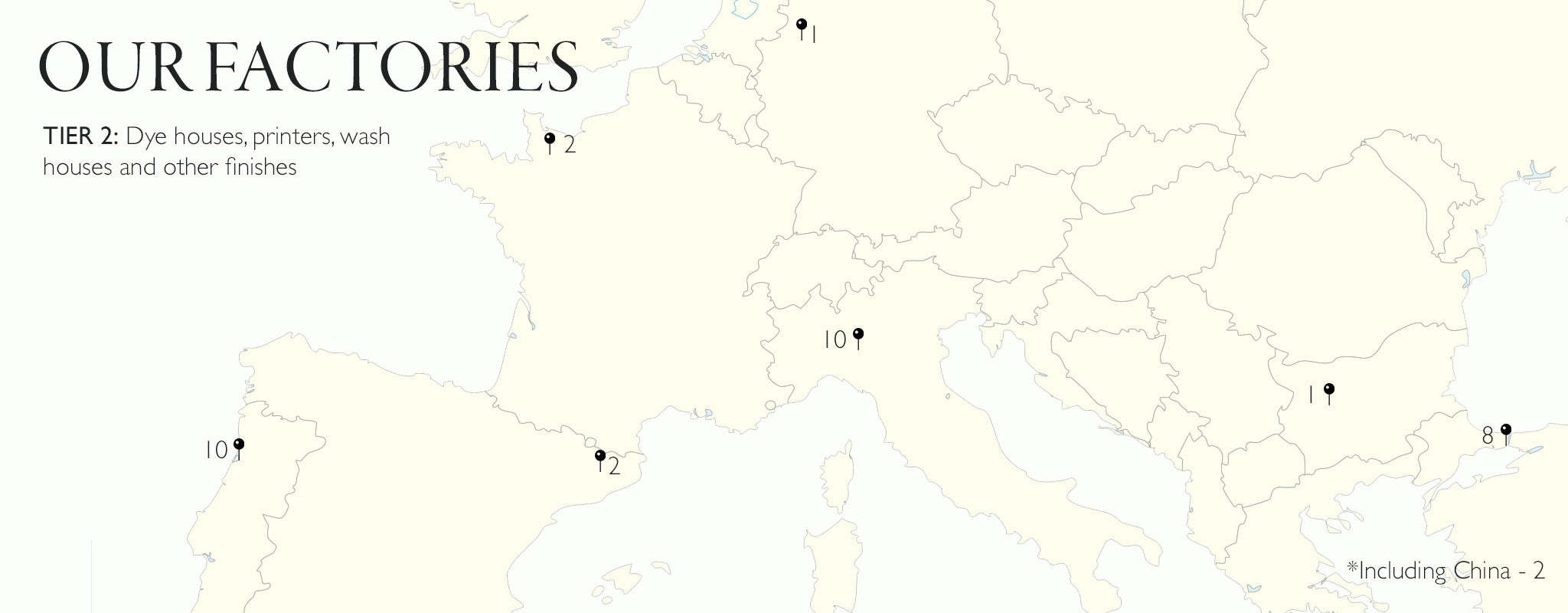 Our Code of Conduct is signed by all direct suppliers (tier 1) and some indirect suppliers too (tier 2). It is a binding document and details our expectations of how business is conducted. We check against these when we visit the factory facilities, which we aim to do at least once every year (there were some disruptions over the last 2 years).