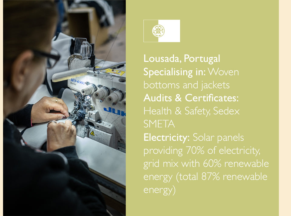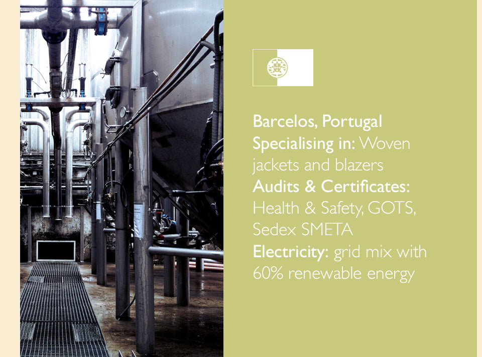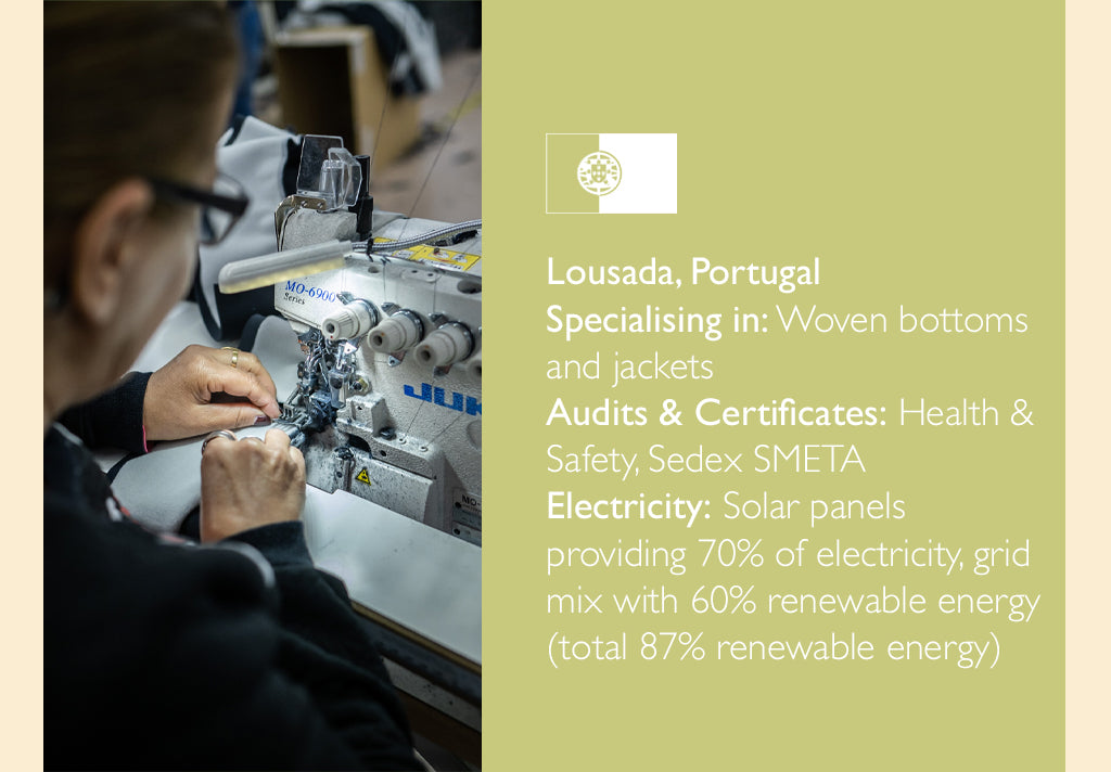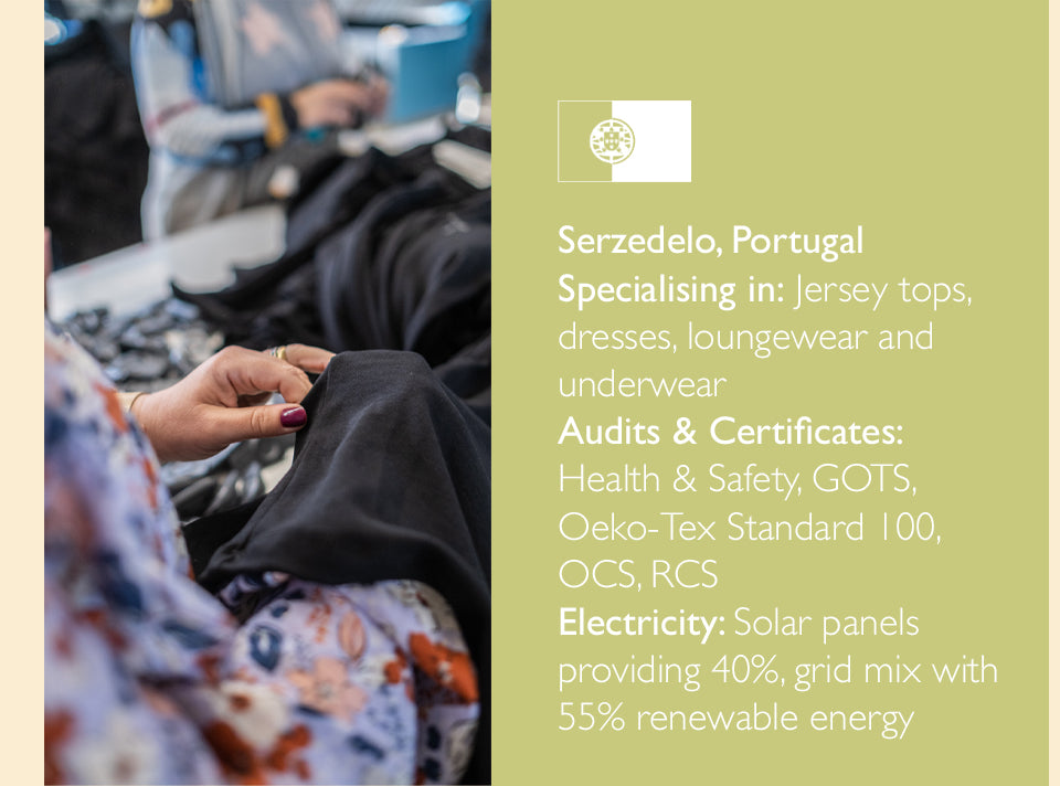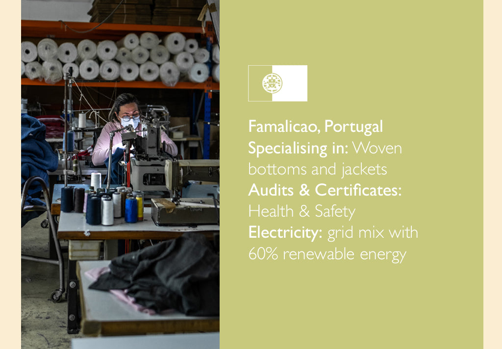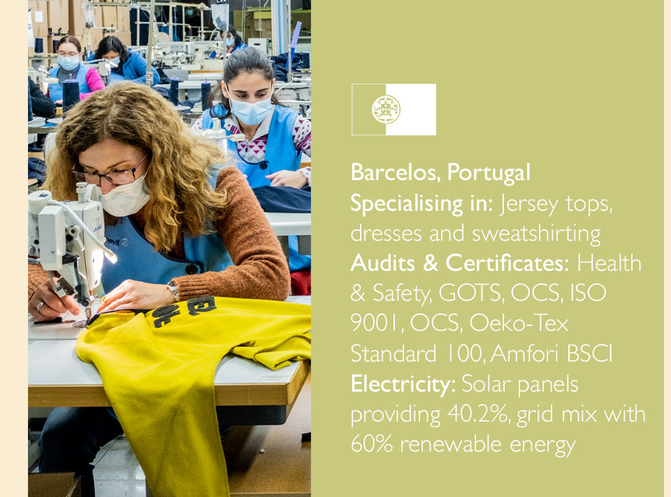 Our factories are spacious, safe and clean environments that are punctuated with a lively atmosphere and hard-working people who are committed to the product they are making, and to reducing fashion’s impact on the environment.