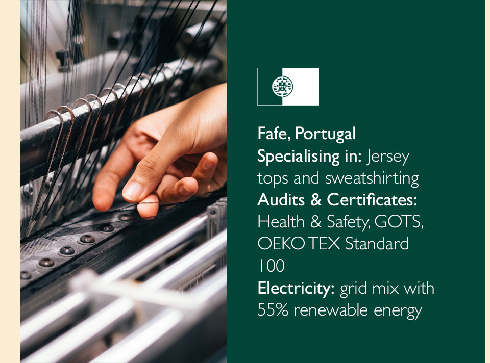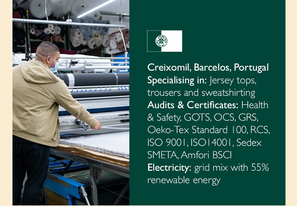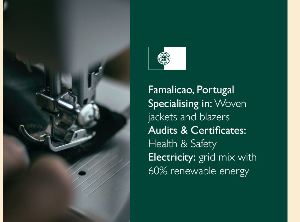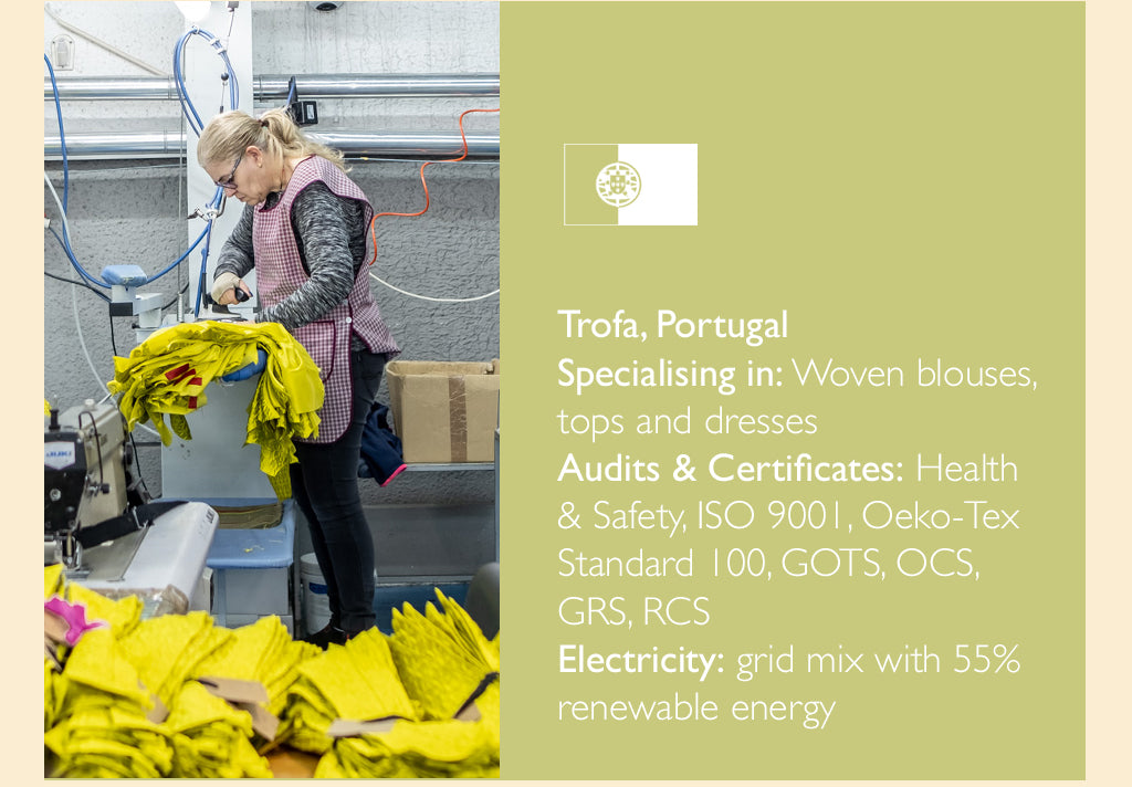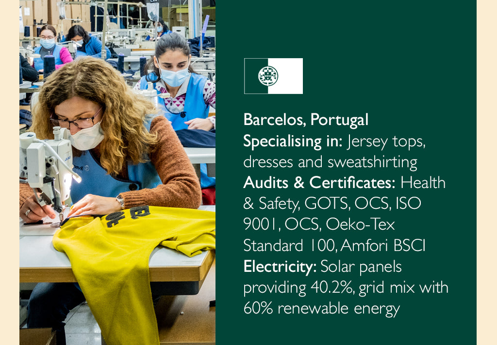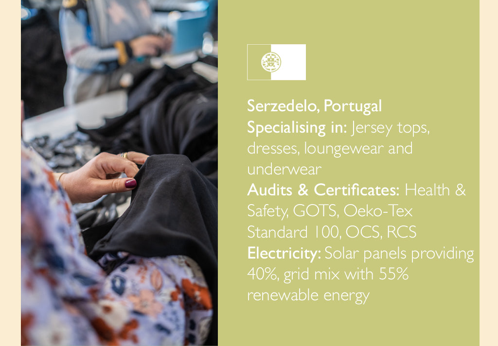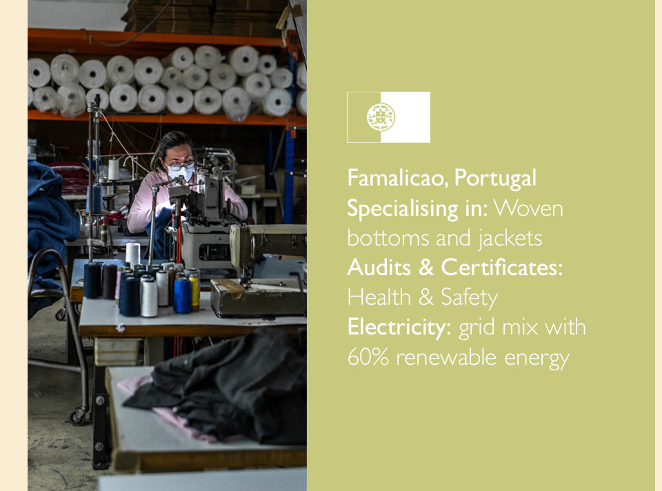 Our factories are spacious, safe and clean environments that are punctuated with a lively atmosphere and hard-working people who are committed to the product they are making, and to reducing fashion’s impact on the environment.