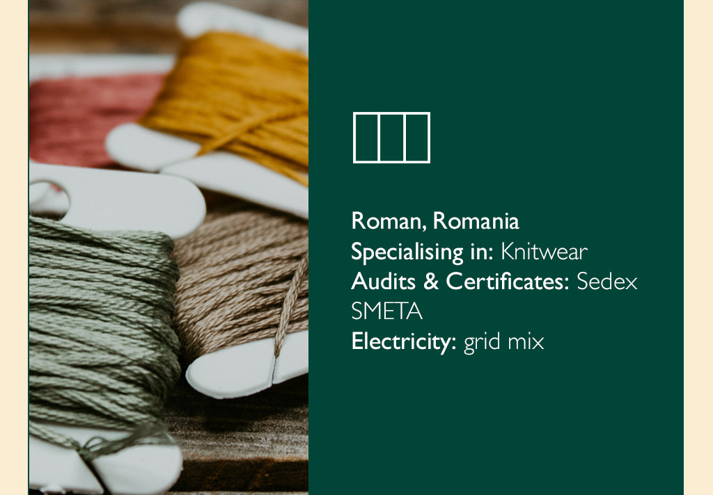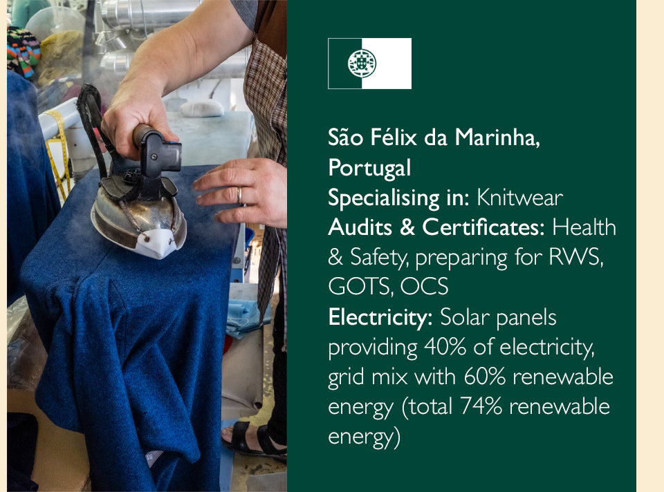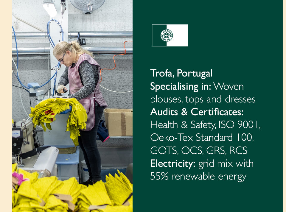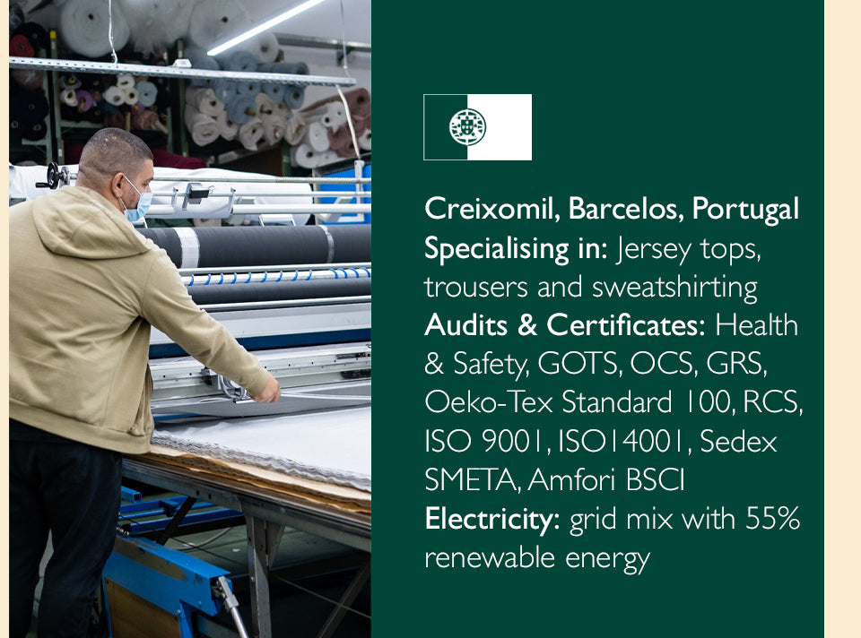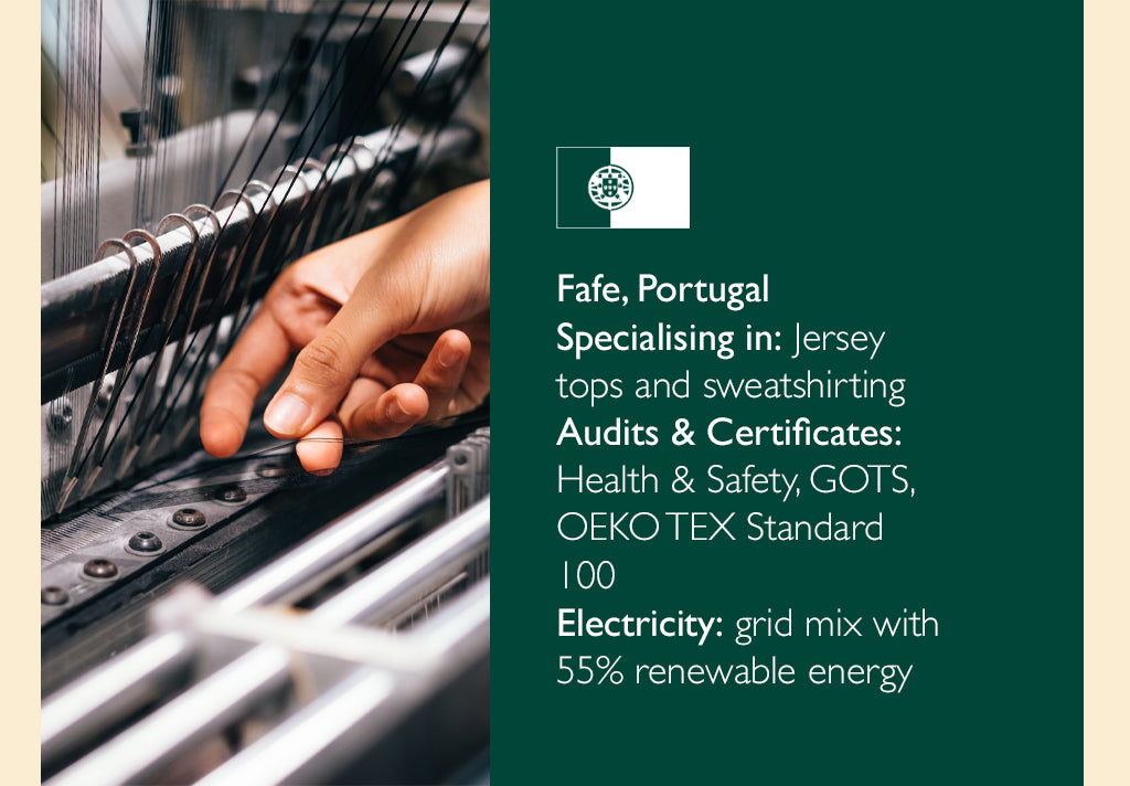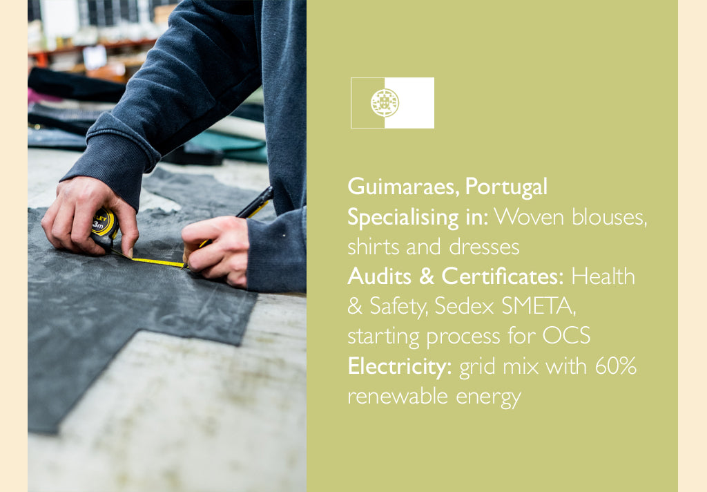 Our factories are spacious, safe and clean environments that are punctuated with a lively atmosphere and hard-working people who are committed to the product they are making, and to reducing fashion’s impact on the environment.