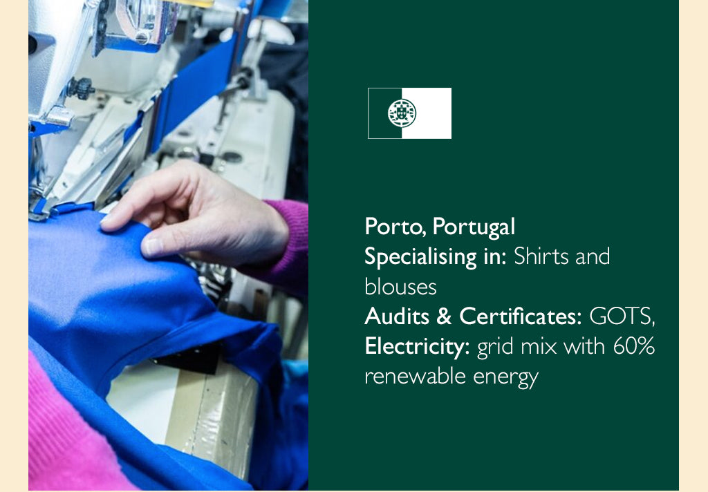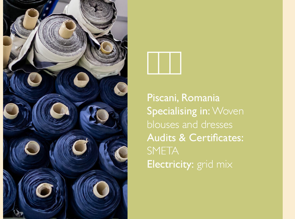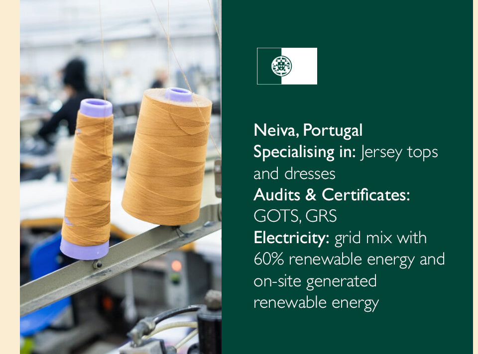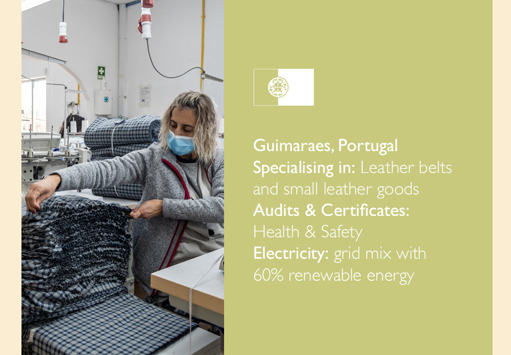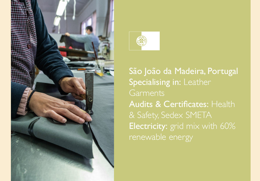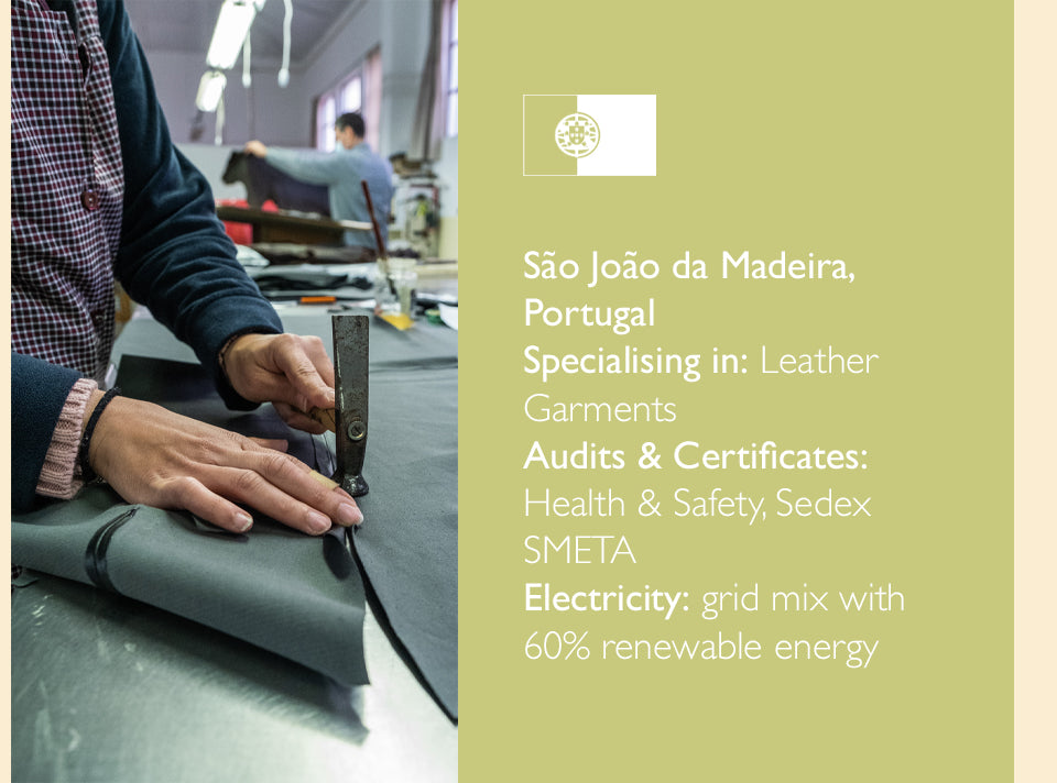 • Vet every factory and only work with trusted factories and manufacturing partners who share our vision for circular fashion who committed to reducing their environmental impact