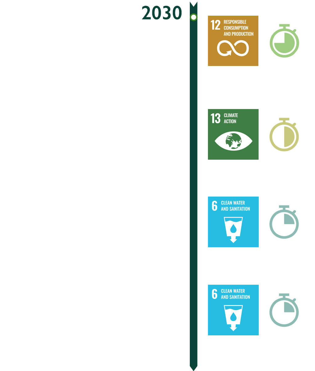 Reduce use of water related creation and processing of materials by 30%, from a 2019 benchmark. Procure materials and fibres with lower water footprint and work with suppliers to adopt better water management practices.