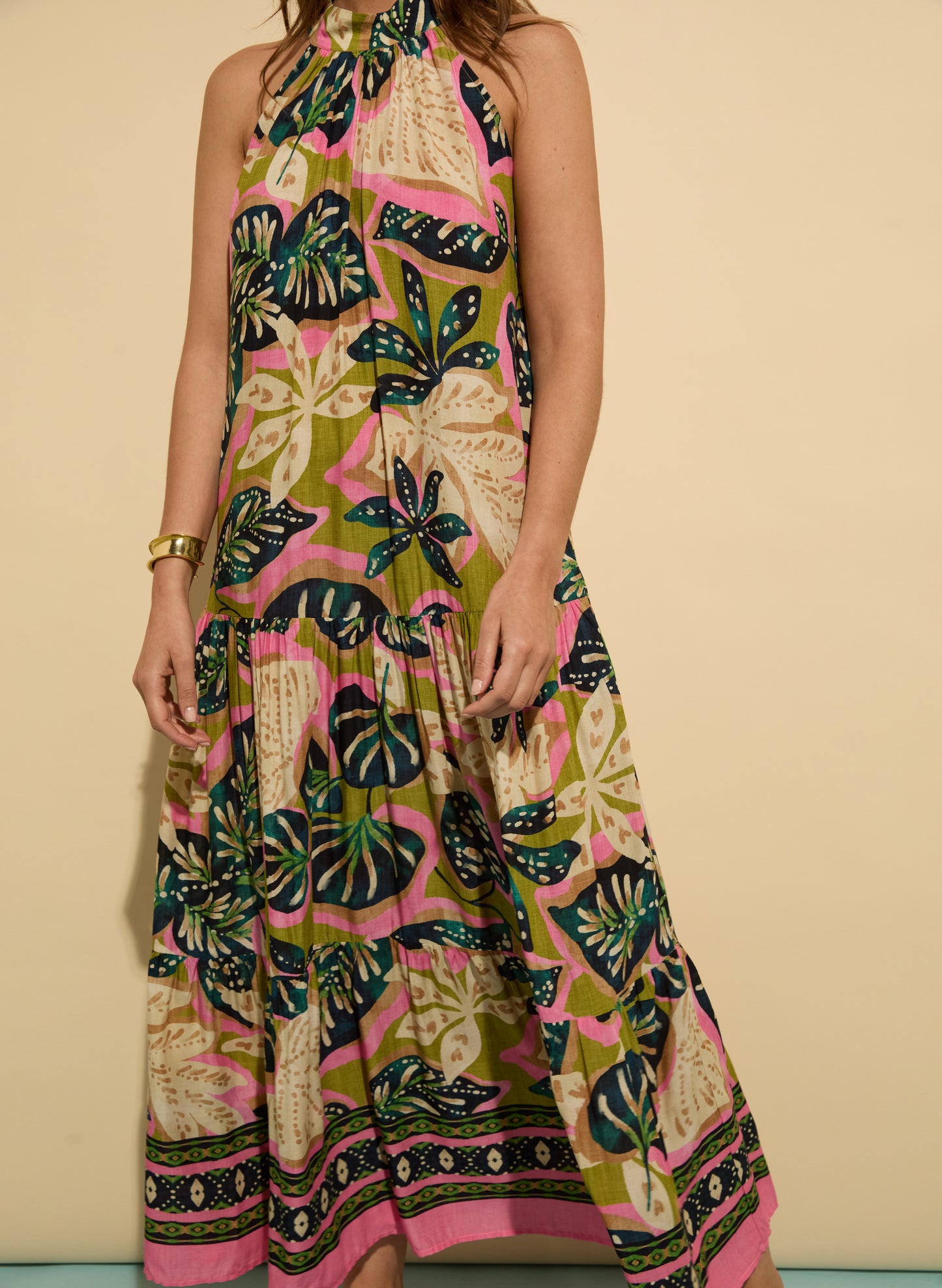 Nothing says summer like a floaty halterneck dress! The Anouk Printed Dress is maxi length and adorned with a tropical palm print - making it the number one contender for holiday packing! Lightweight and cut into easy tiers, it ties around the neck. Just add earrings and sandals for an effortless day-to-night outfit.