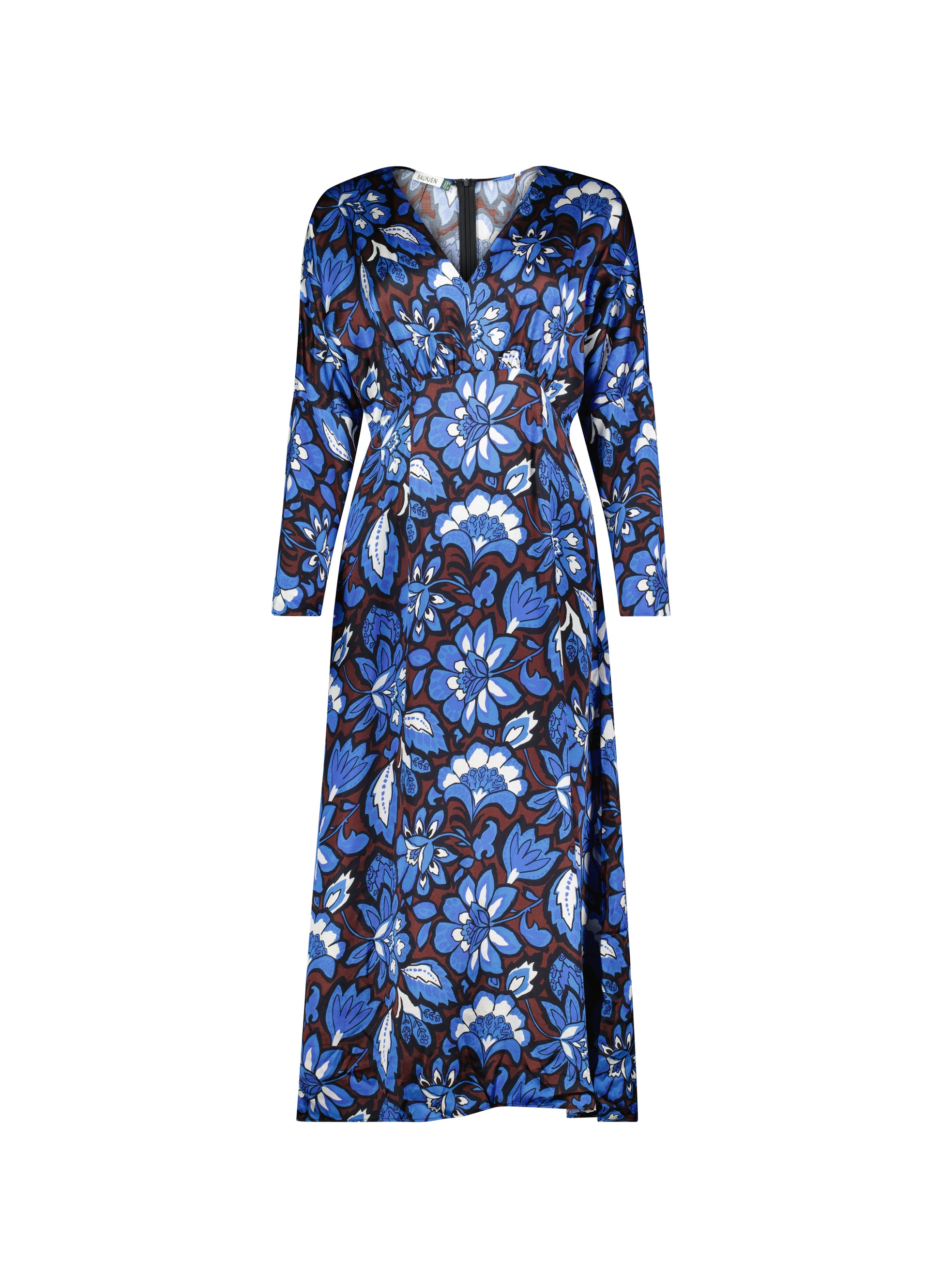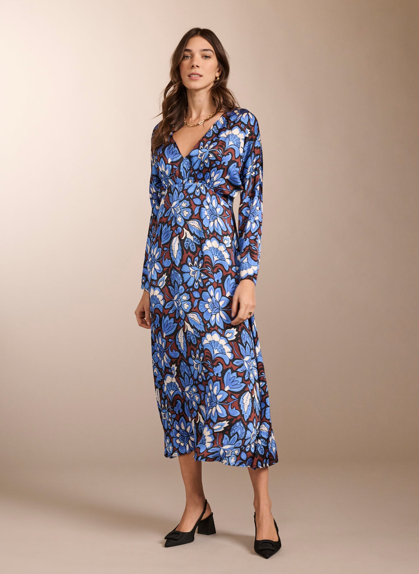 Say hello to your new day-to-night dress! Arabella features a statement floral print on a woven blend of recycled satin for that touch of opulence. A feminine silhouette is created with a loose top half and a curved seam below the bust, which skims the waist before flowing out. Slip it on and feel ready for anything.