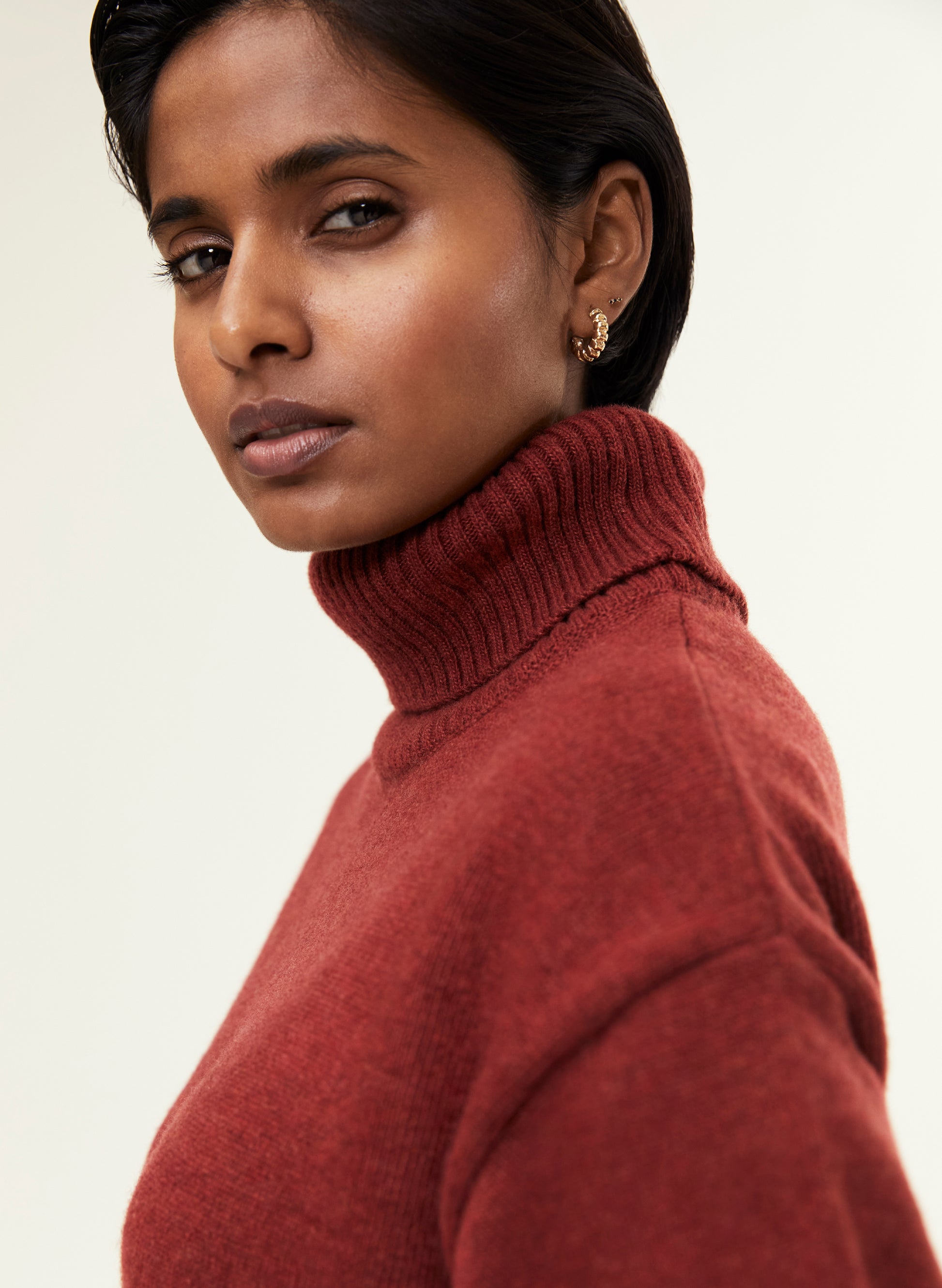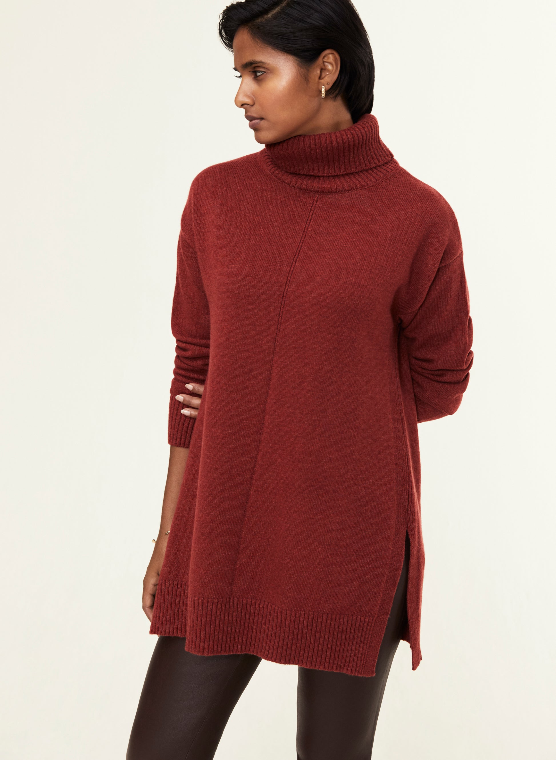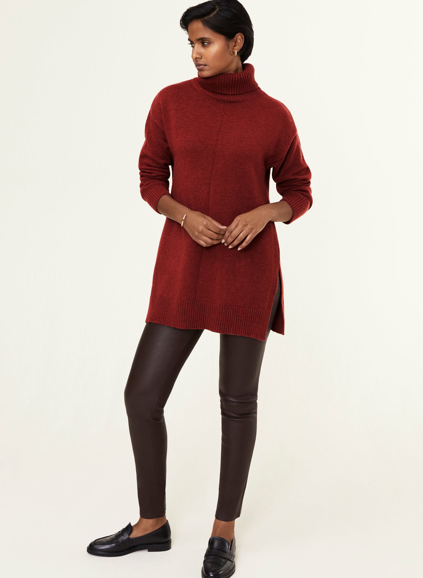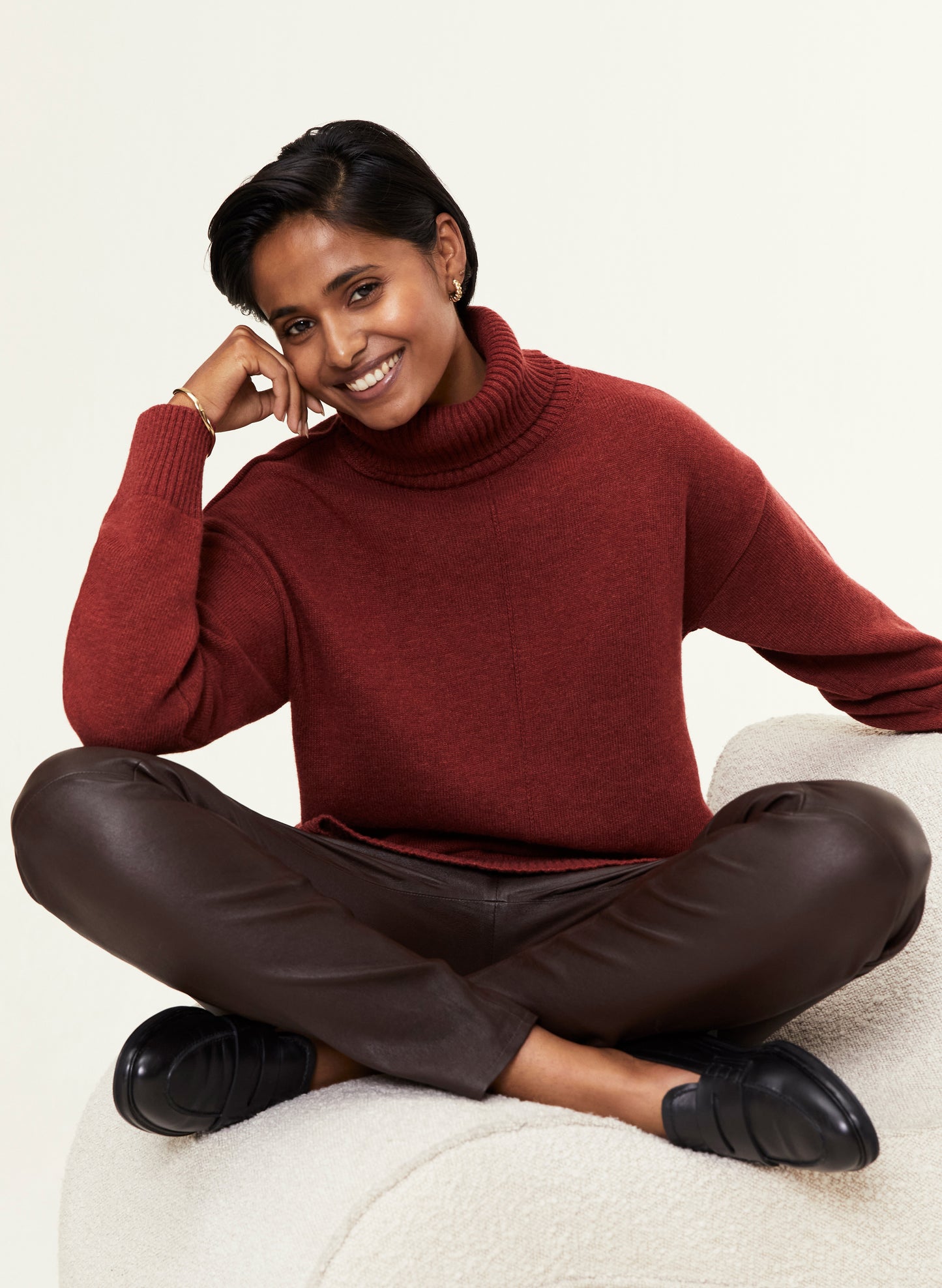 Asher is the one to throw over skinny jeans and leather leggings. Irresistibly cosy, we’ve cut it generously for a longer line, so it will cover your bum and layer effortlessly. It features side splits (so you can get into your pockets easily!) and the turtleneck can be folded over - but we also like it scrunched down.