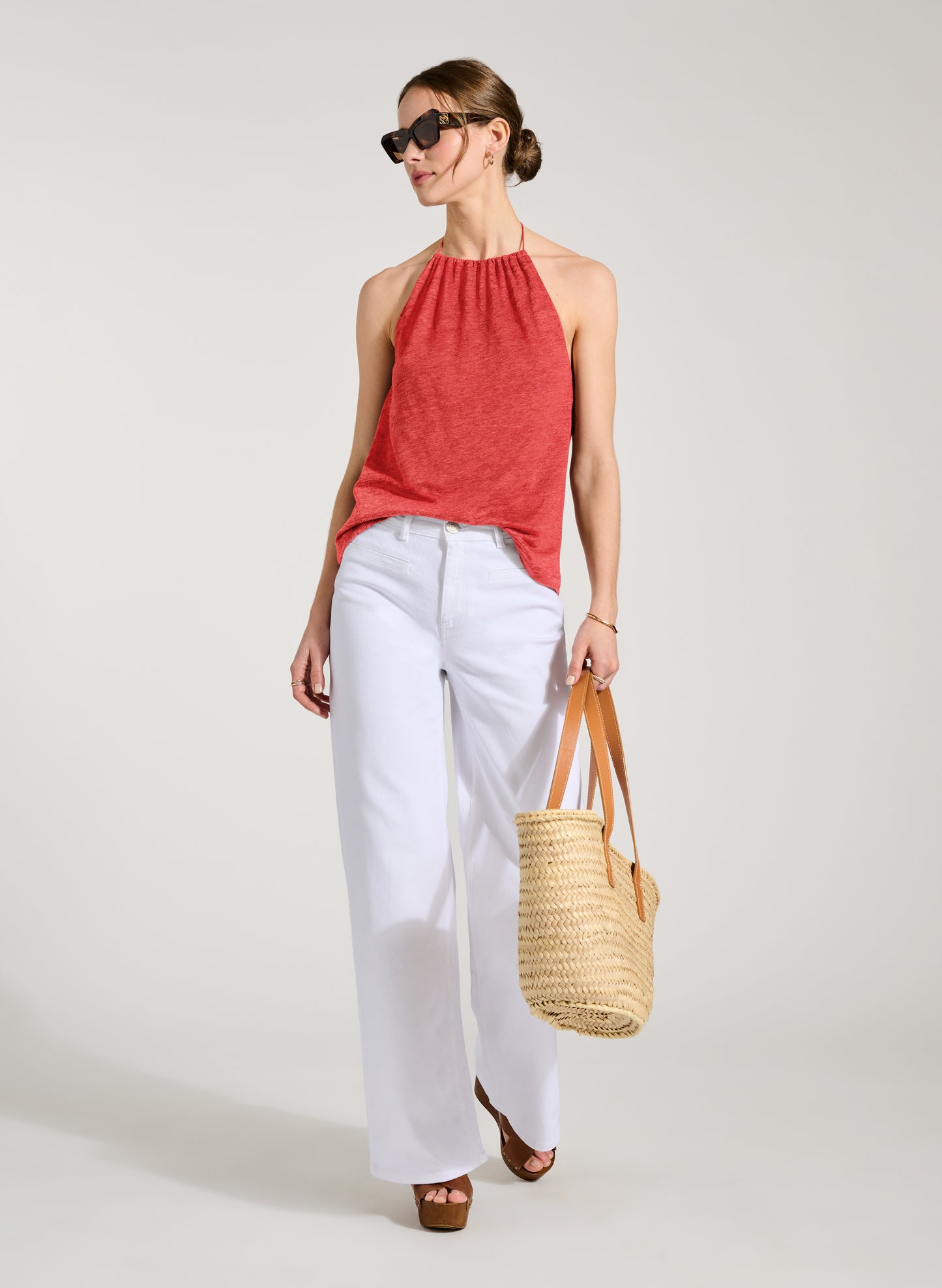 Flash bare shoulders and arms with a beautifully-cut halterneck. Crafted in a slubby linen and jersey blend, Aster is a joy to wear in hot weather with shorts or for a tonal outfit - our Candace skirt. A self-tie style with gathering into the neck and a relaxed fit, the back is subtly elasticated to help keep it in place.