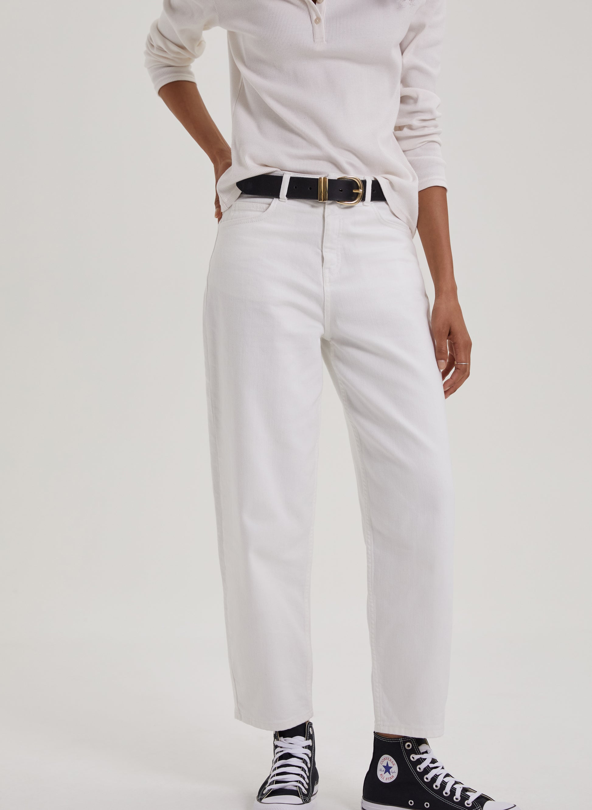 A jean for all seasons - literally. Why? Because the Barrel’s tapered fit around the ankle will see you through summer with sandals, then sit neatly above ankle boots come autumn (and yes, white jeans are a winner year-round in our book!). Their shape is fitted around the waist and hips, then loose through the leg before nipping in again at the hems. So easy to style, these are our new go-to.