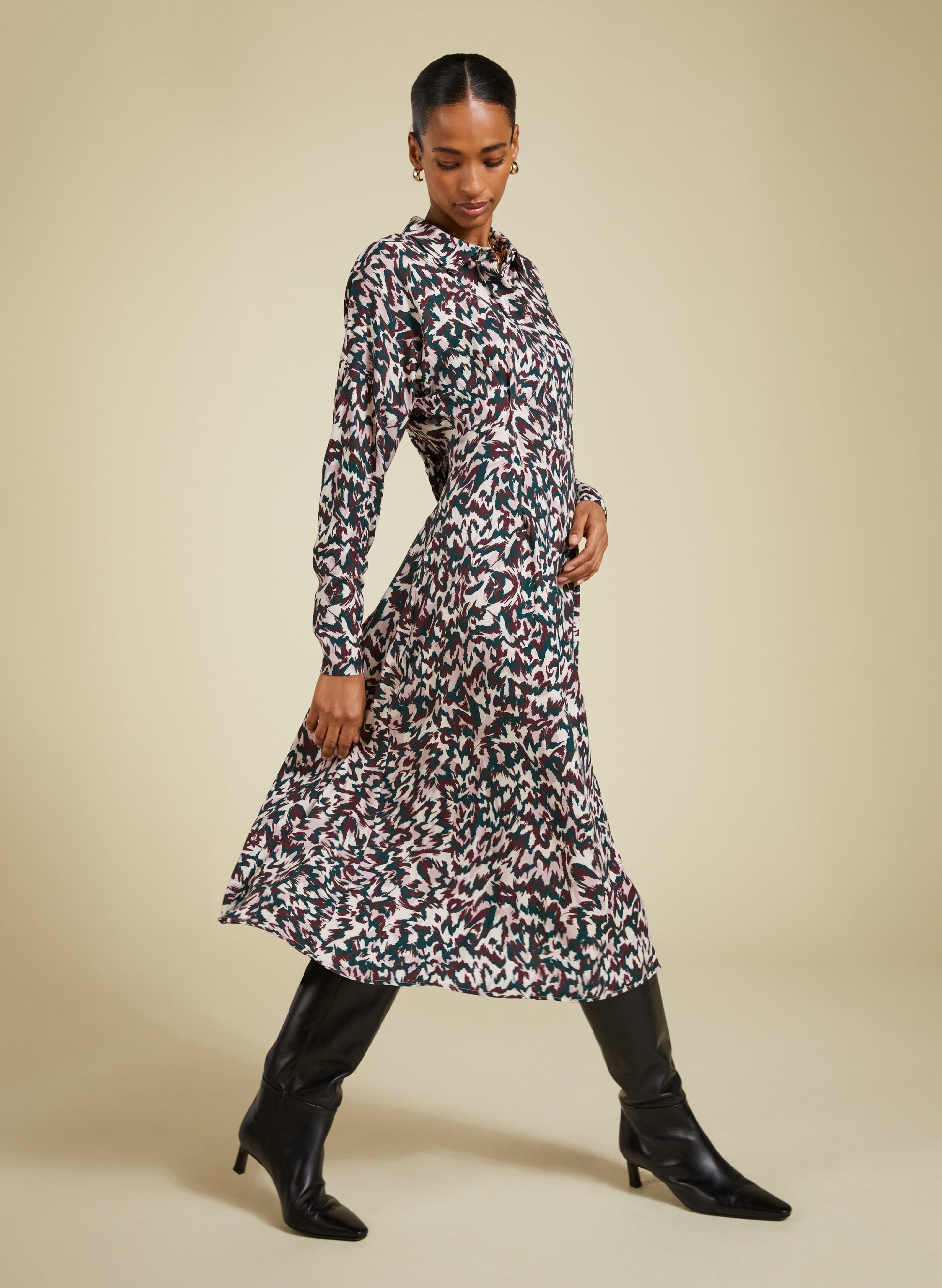 Whether it’s for work or play, the Becky Midi Dress won’t let you down. A fresh take on the classic shirt dress, it buttons to the waist and features a relaxed top section with batwing sleeves that taper into the cuffs, while the waist is loosely fitted before flowing out into an A-line shape. Easy, versatile, and inherently chic, its flower-meets-animal print is perfect for making a statement in the office.