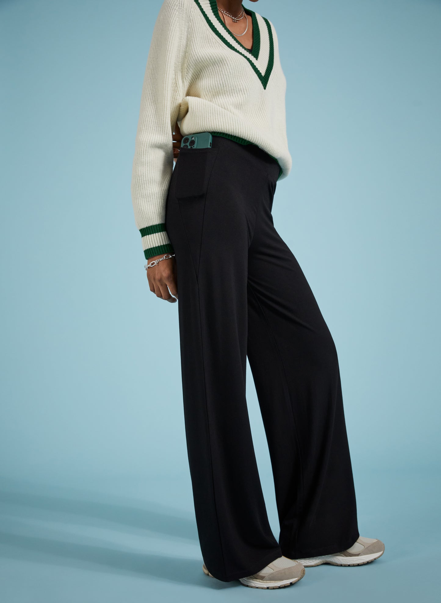 Dreaming of super-comfortable, wide-leg leggings? Look no further! Bonnie is crafted in our signature soft, stretchy jersey and simply pulls on. They feature a wide double layer waistband for superior comfort and fit. Designed to be fitted around the hips and bum, then flare to a wide, flattering leg shape. You won’t want to take them off!