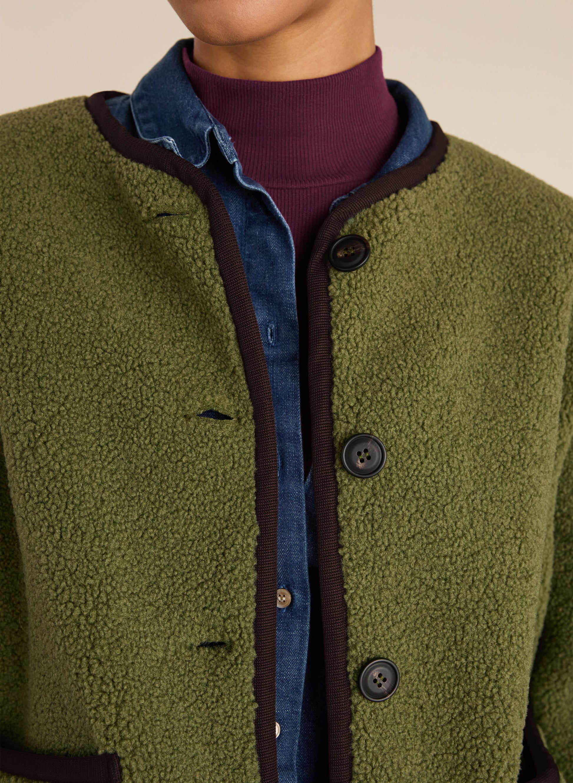 Cold days call for the Caitlin Fleece Jacket. Crafted in super-soft recycled borg, this snuggly style is cut for a relaxed fit with plenty of room for layering knitwear underneath. Designed for longevity and circularity, every detail from the knitted recycled fabric to the recycled tape trim is made from the same material, so it can be easily recycled again when it eventually reaches the end of its life. Cosying up never felt so good!