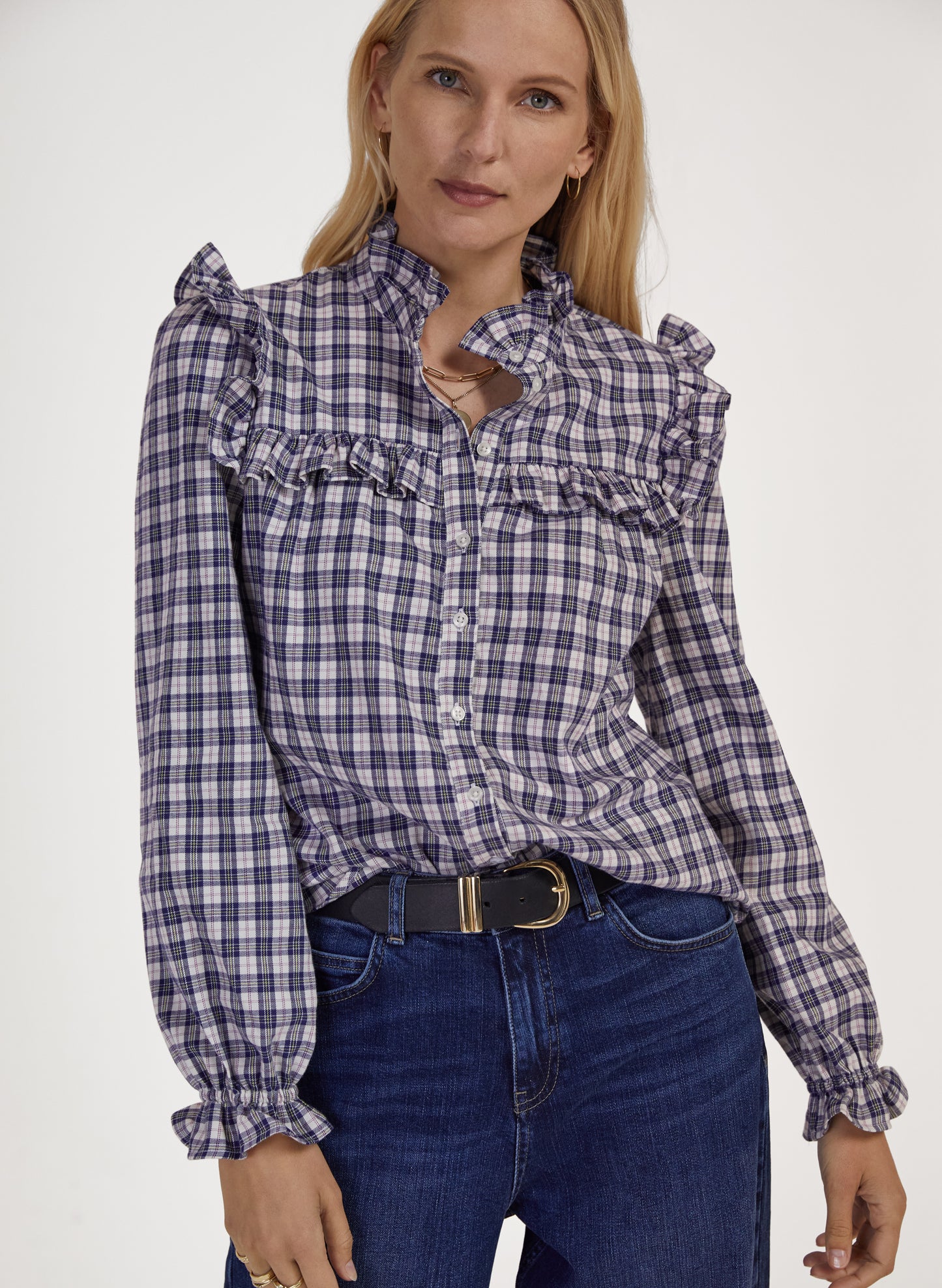 Masculine checks meet feminine details with the Cambrie Blouse. With lashings of frills, a versatile and timeless check feels elevated: note the ruffles along the bib front, shoulders and stand collar. Gathered sleeves and cuffs make this an easy style to wear with your favourite jeans.