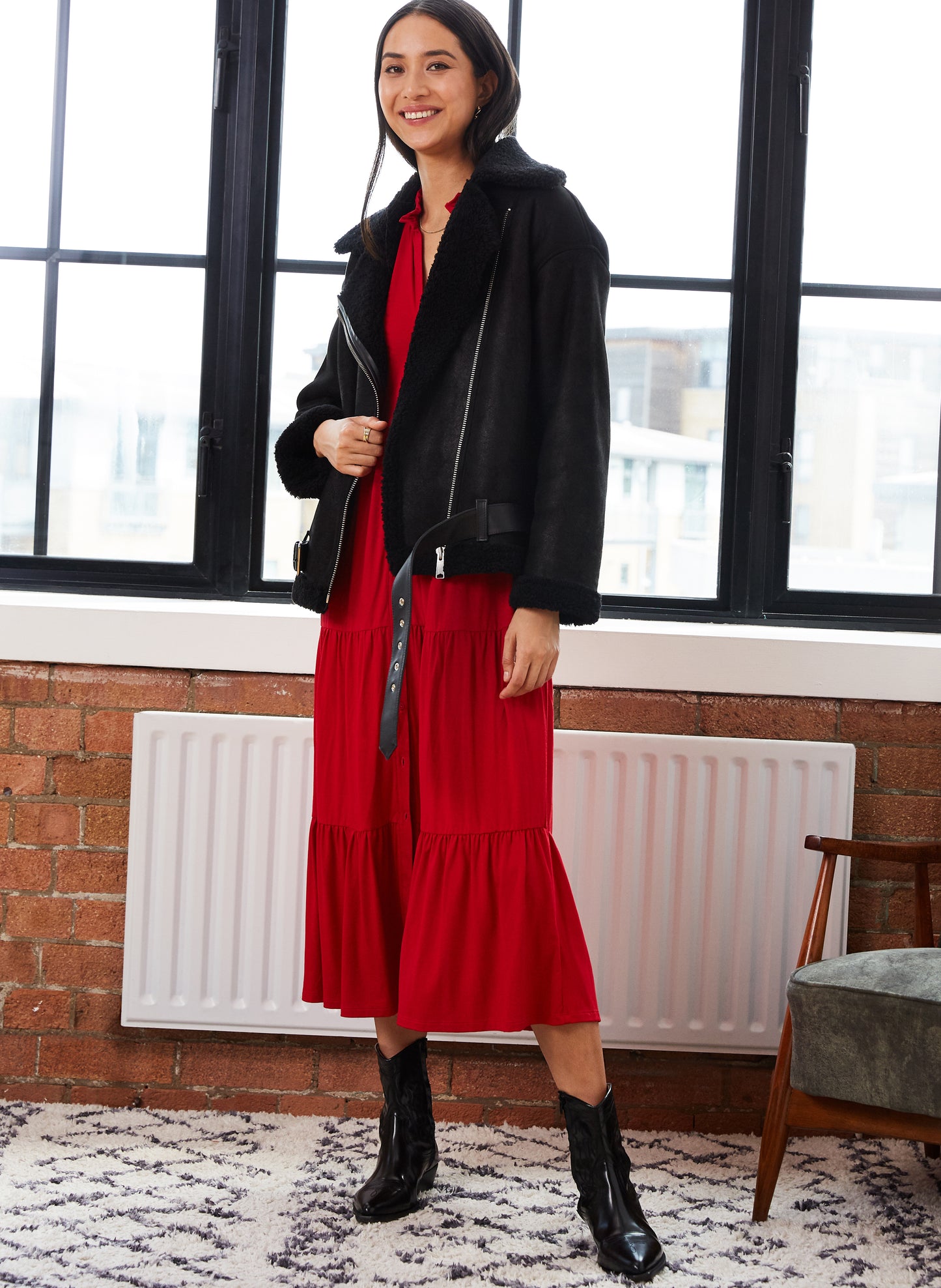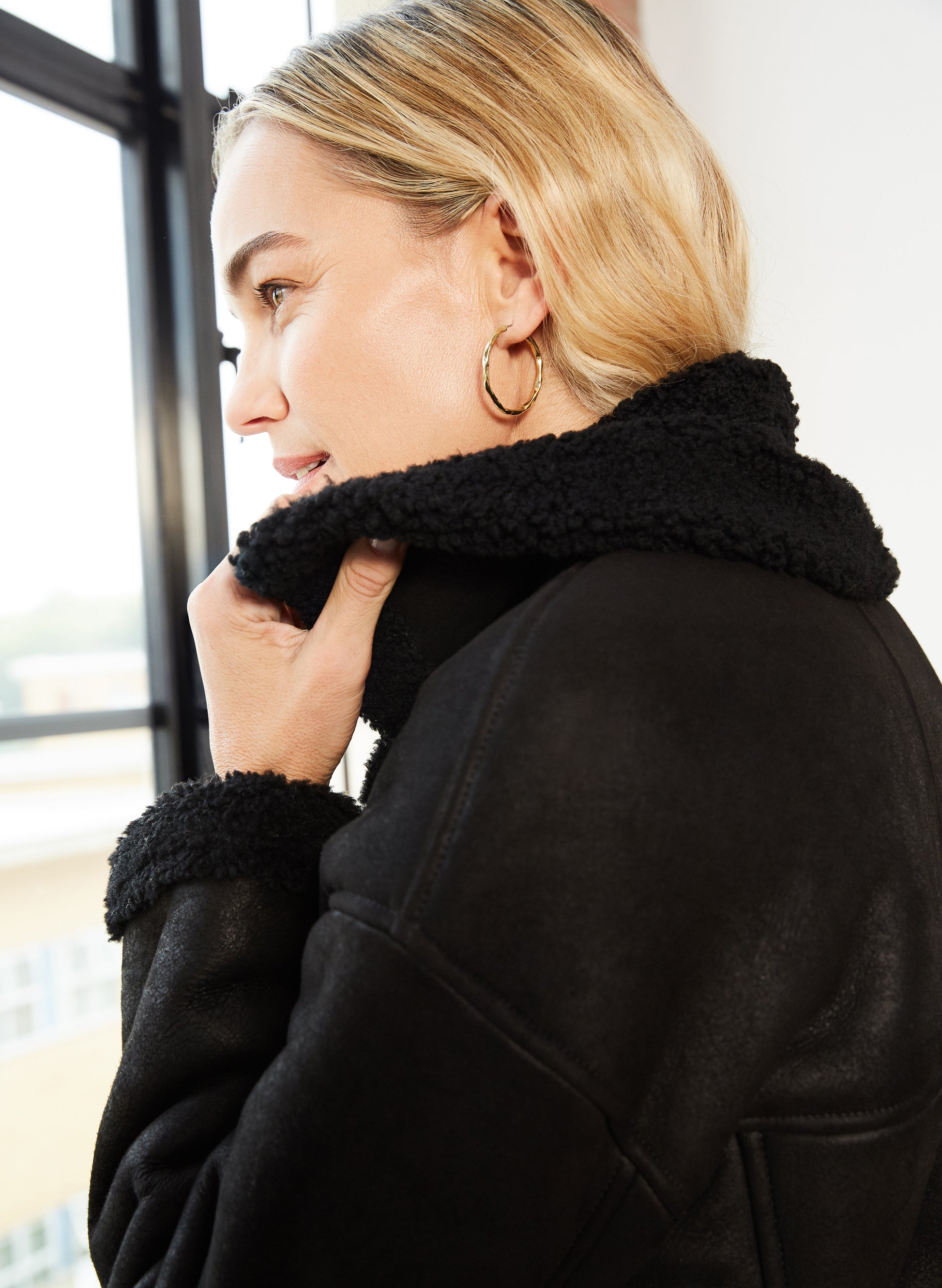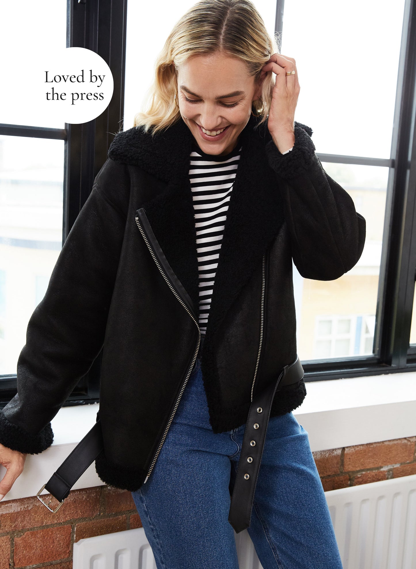 ‘I am so excited about this jacket’ says Natalie, our Head of Design. A true forever piece, this luxurious design has been cut with a slightly oversized, borrowed-from-the-boys feel, so sporting a thick jumper underneath won’t be an issue. Crafted from premium sheepskin, the cuffs can be worn rolled up or down and the co-ordinating buckle belt is detachable. A timeless addition to any wardrobe, your jeans and dresses are set to fall for Carey. An investment to enjoy year after year.