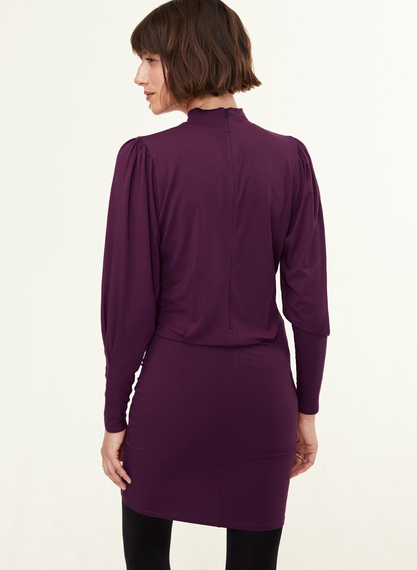 Soft and forest-friendly jersey Carolyn is cut to drape across the body and offset with a fitted skirt. An asymmetric panel of ruching gives this impactful design that extra flattering detail. Up top, a fitted funnel neck delivers evening elegance. Reach for your favourite pair of earrings and a clutch bag - heels optional!