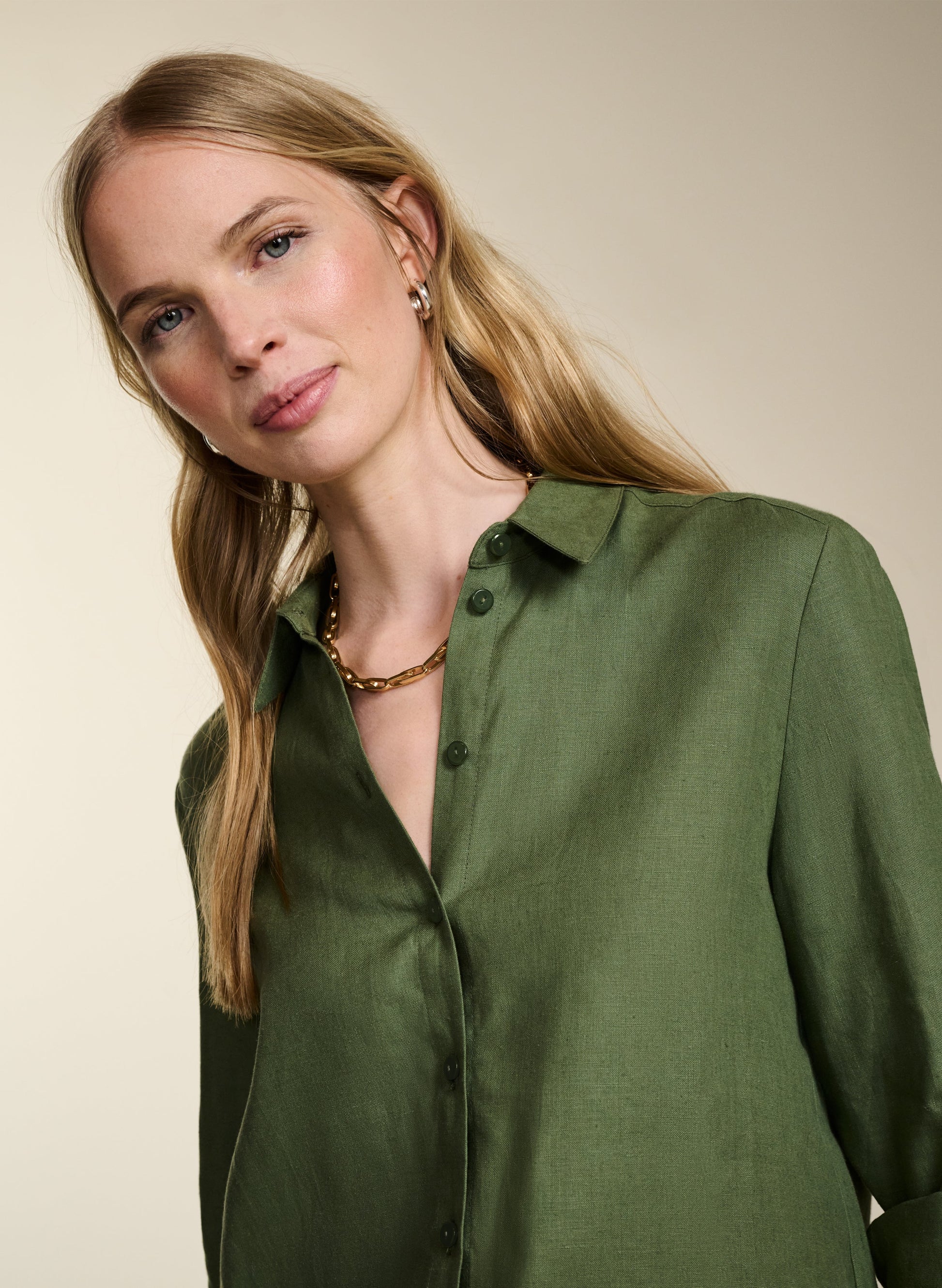 The trusty boyfriend shirt gets a summery makeover in hemp. We love this fabric for its eco credentials and relaxed and lightweight feel. Della is cut for an easy fit, and comes in a versatile shade of light khaki. A hard-working basic, we love it paired with our matching Yvonne Hemp Trousers for a contemporary co-ord.