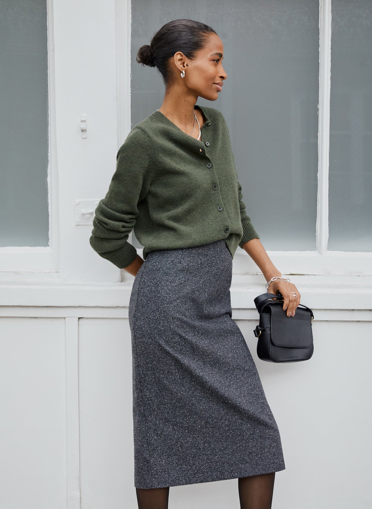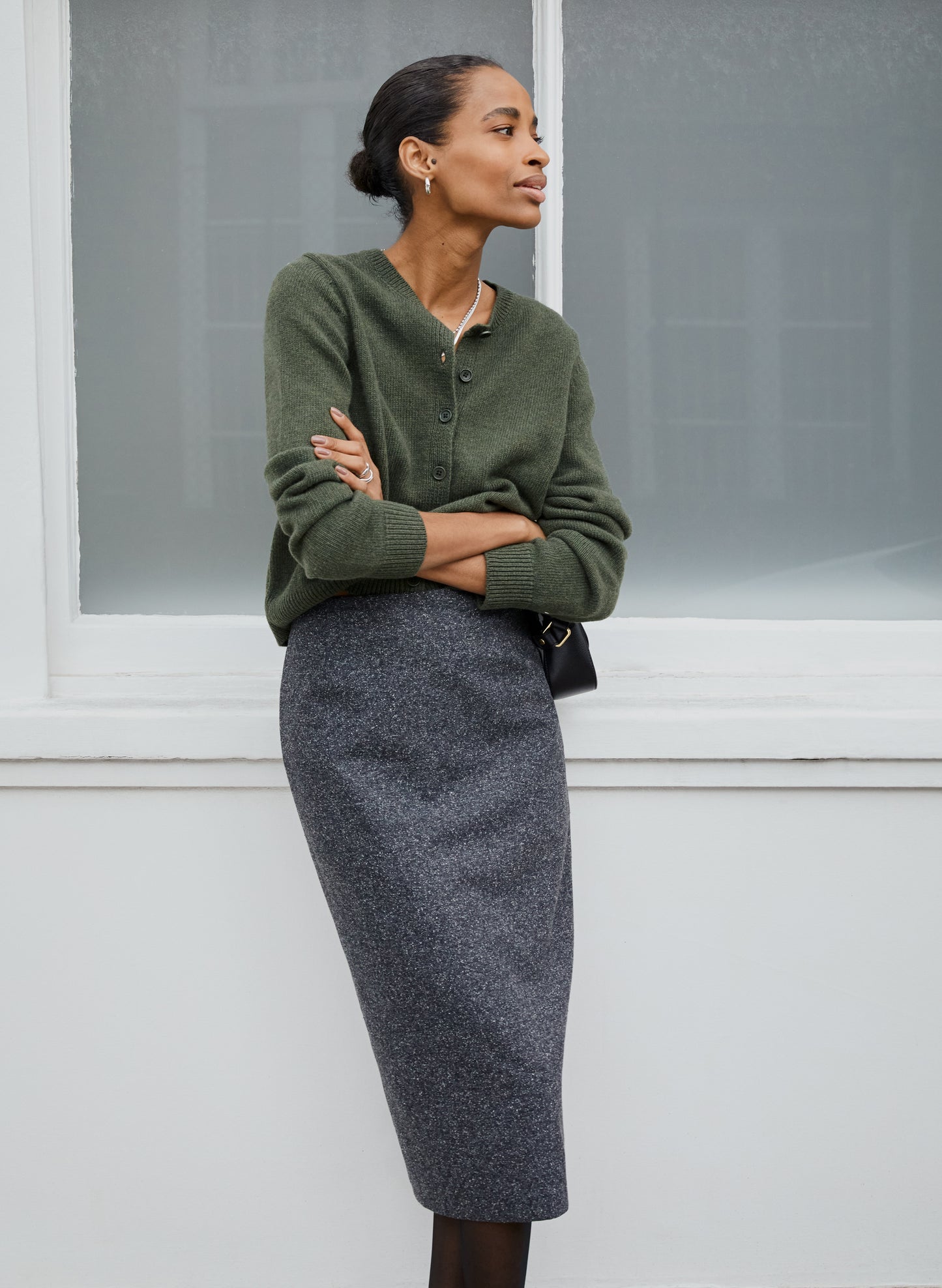Looking for a chic alternative to trousers? Our Eliza Pencil Skirt is devastatingly elegant. Its fitted column shape makes it a natural choice for work - especially paired with the Marie Wool Blend Cardigan. Simply cut with a clean front, its recycled wool blend flannel fabric gives a beautifully flecked texture and subtle nuances in colour.