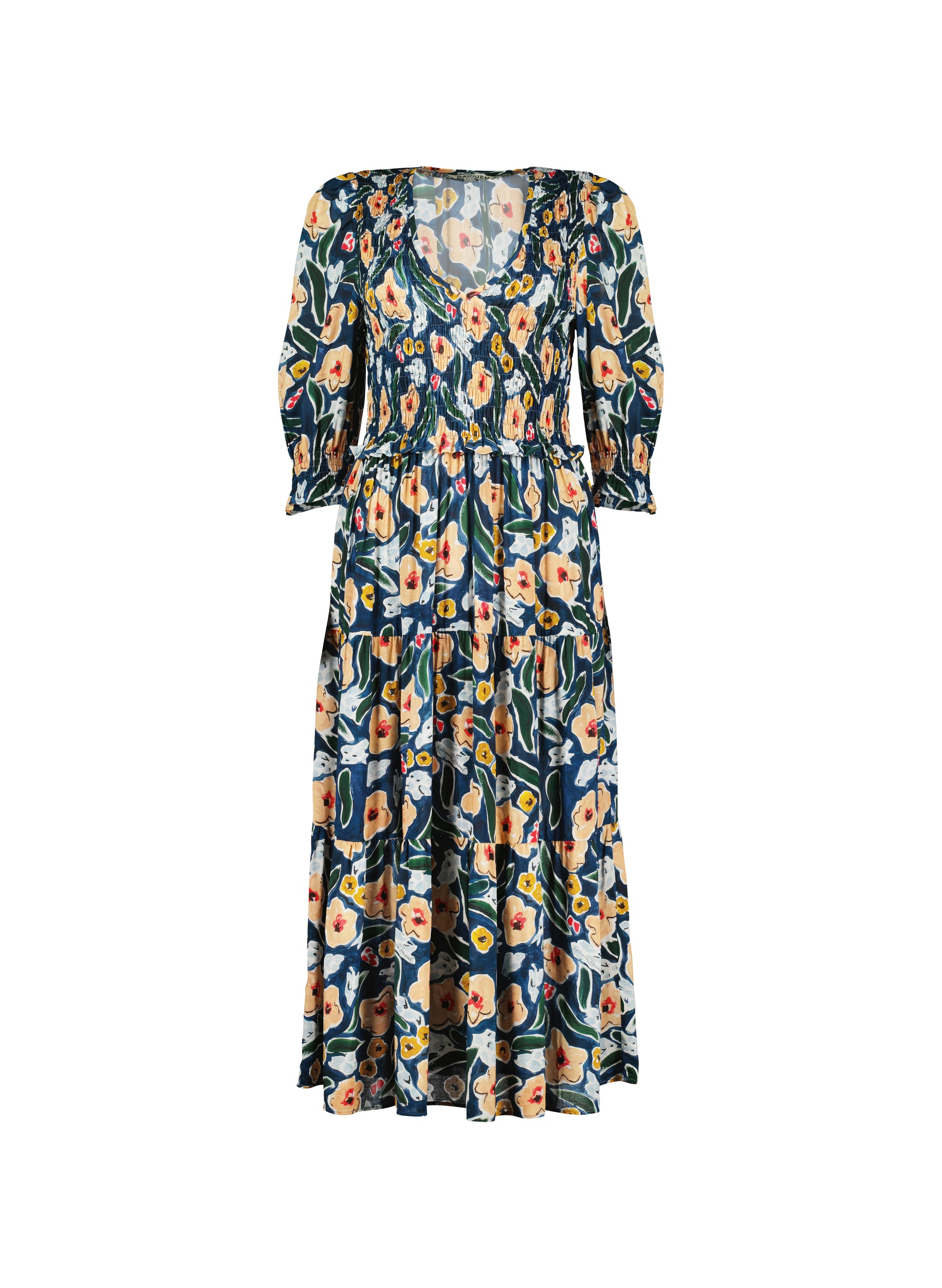 This is the sort of effortless dress that makes you instantly feel ‘done’. Crafted from a beautiful and fluid voile that is printed in Italy, the painterly pattern was created especially for the Katherine Ormerod collaboration and features her signature very subtly hidden in the print. The bodice is smocked for fit and comfort, whilst the skirt is generously tiered. Dressed up or down, either way it promises to make you feel great.