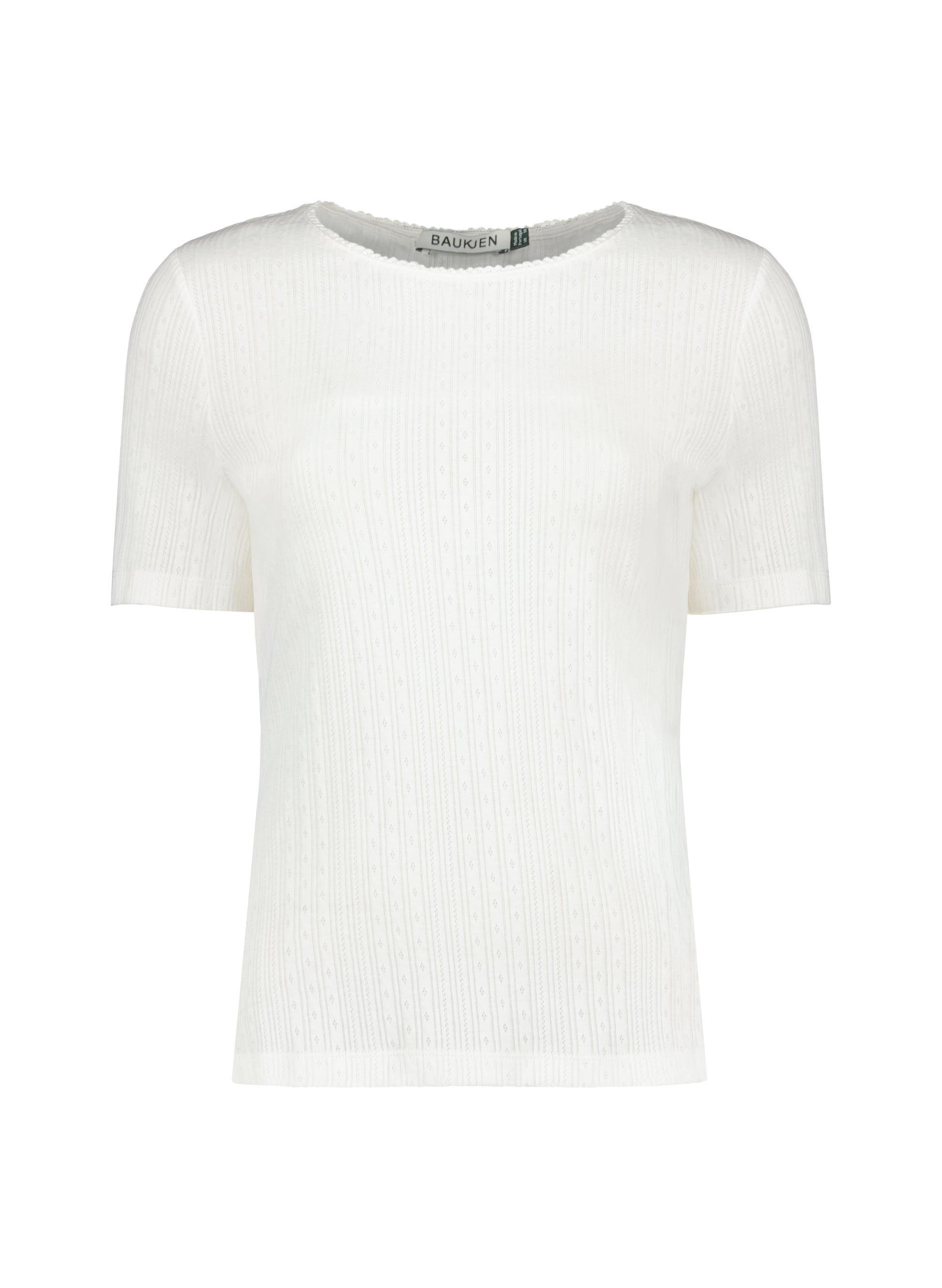 The Gabriella Rib Tee has pretty in its title because… well, it’s pretty! This cute top comes in organic ribbed cotton pointelle jersey and is embellished with scalloped detailing around the crew neckline. Cut for a neat fit, it’s great on its own with jeans or shorts, or layered under an open shirt.
