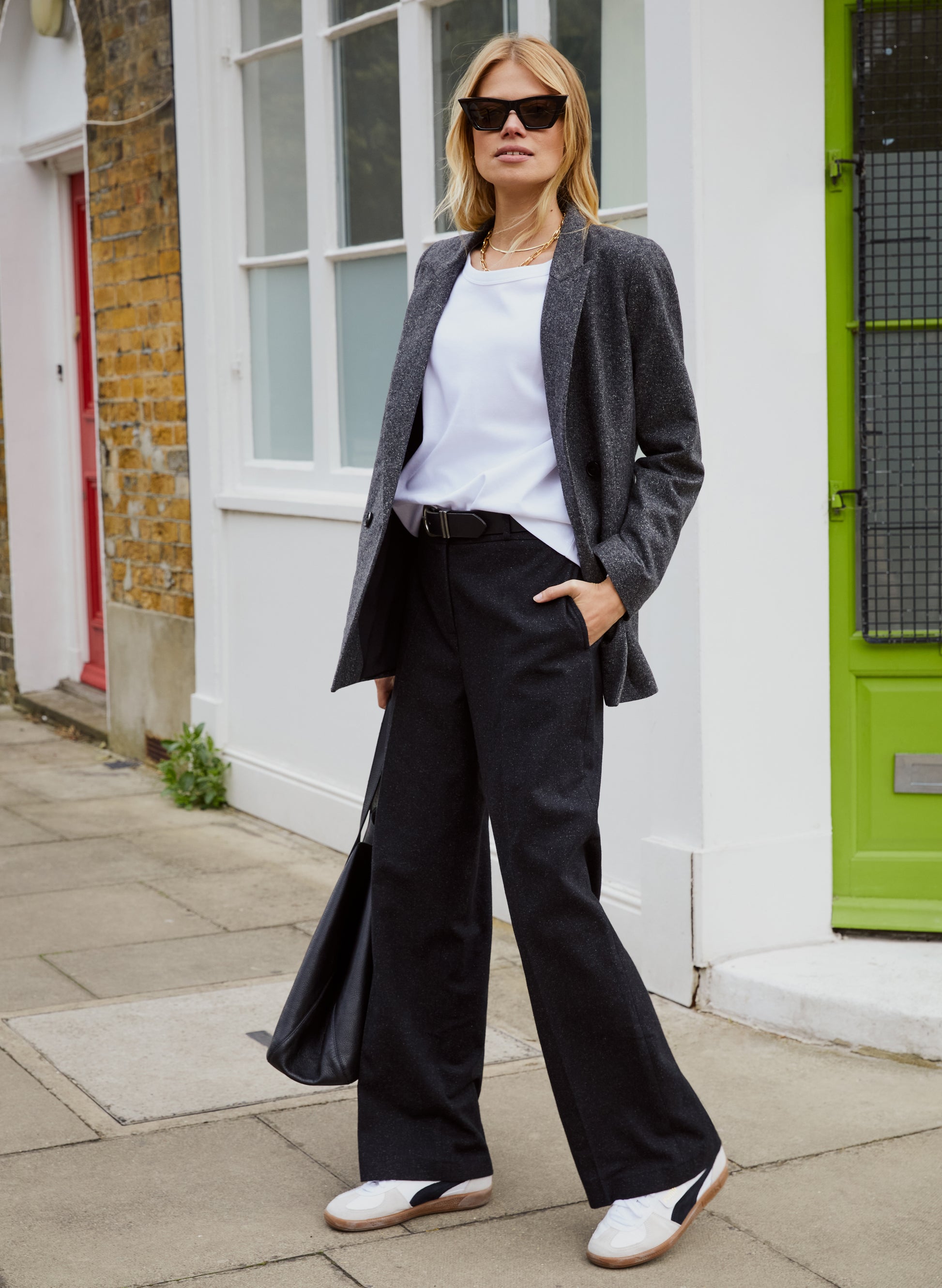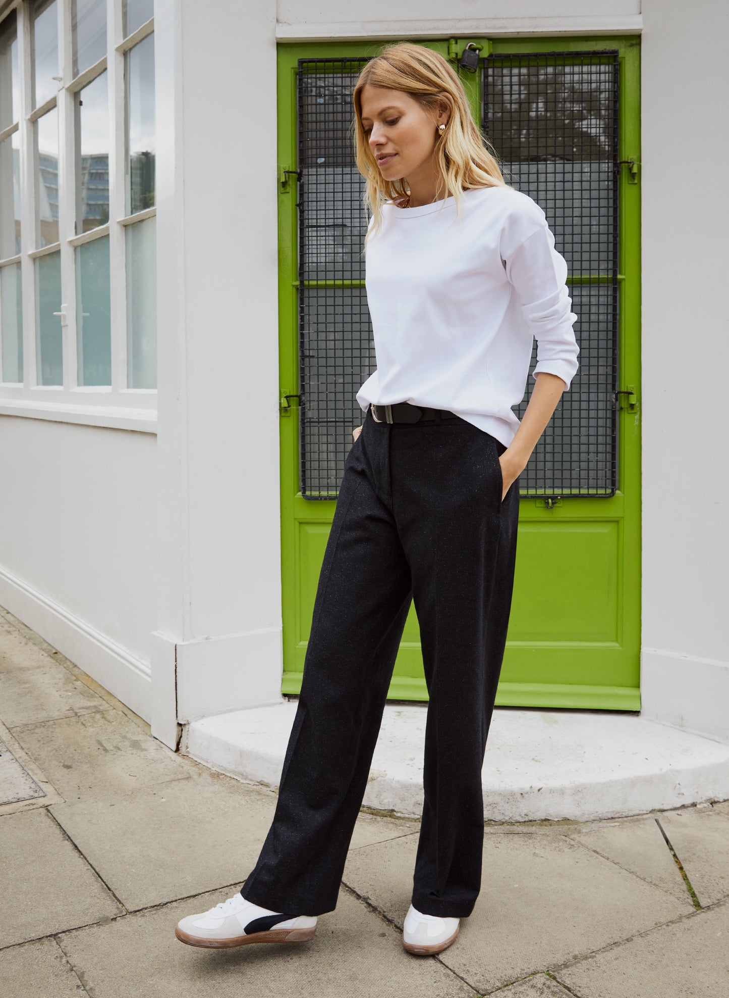 Smart trousers which score high on comfort do exist - our Gwynnie Wool Blend Trousers prove it! This easy style has a clean front cut and a contemporary, wide leg shape with a sharp crease down the front and back. The winning detail is an elasticated, adjustable inner waist tab, so you can tailor them to create your optimum fit. Crafted in a recycled wool blend, the subtle flecks of grey and black only add to their appeal.