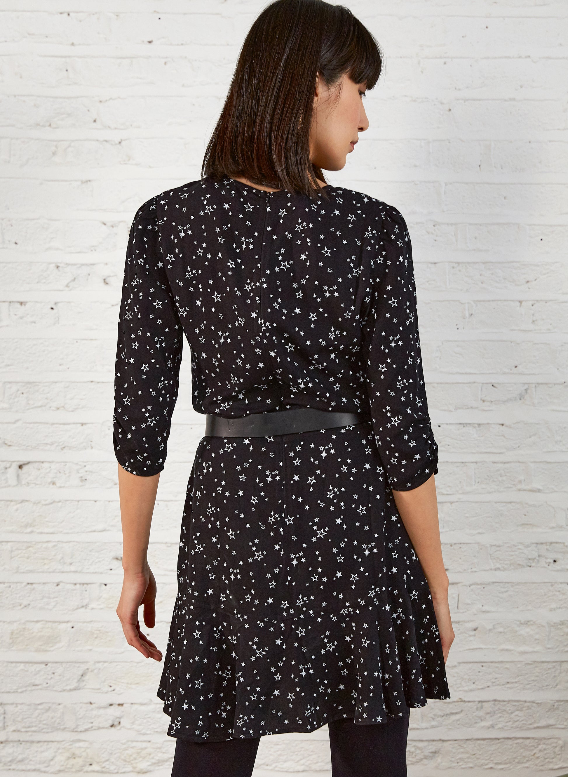 The sassier sister of our Isabella Midi Dress, this style shares our scattered star print but is cut shorter with a flippy peplum hem. Looser on top, it's fitted at the waist and hips before falling into an A-line skirt. Team with our Baukjen signature belt to add definition at the waist. Good news, we use low impact dyes to reduce the ink consumption, water pollution and energy usage and its biodegradable.
