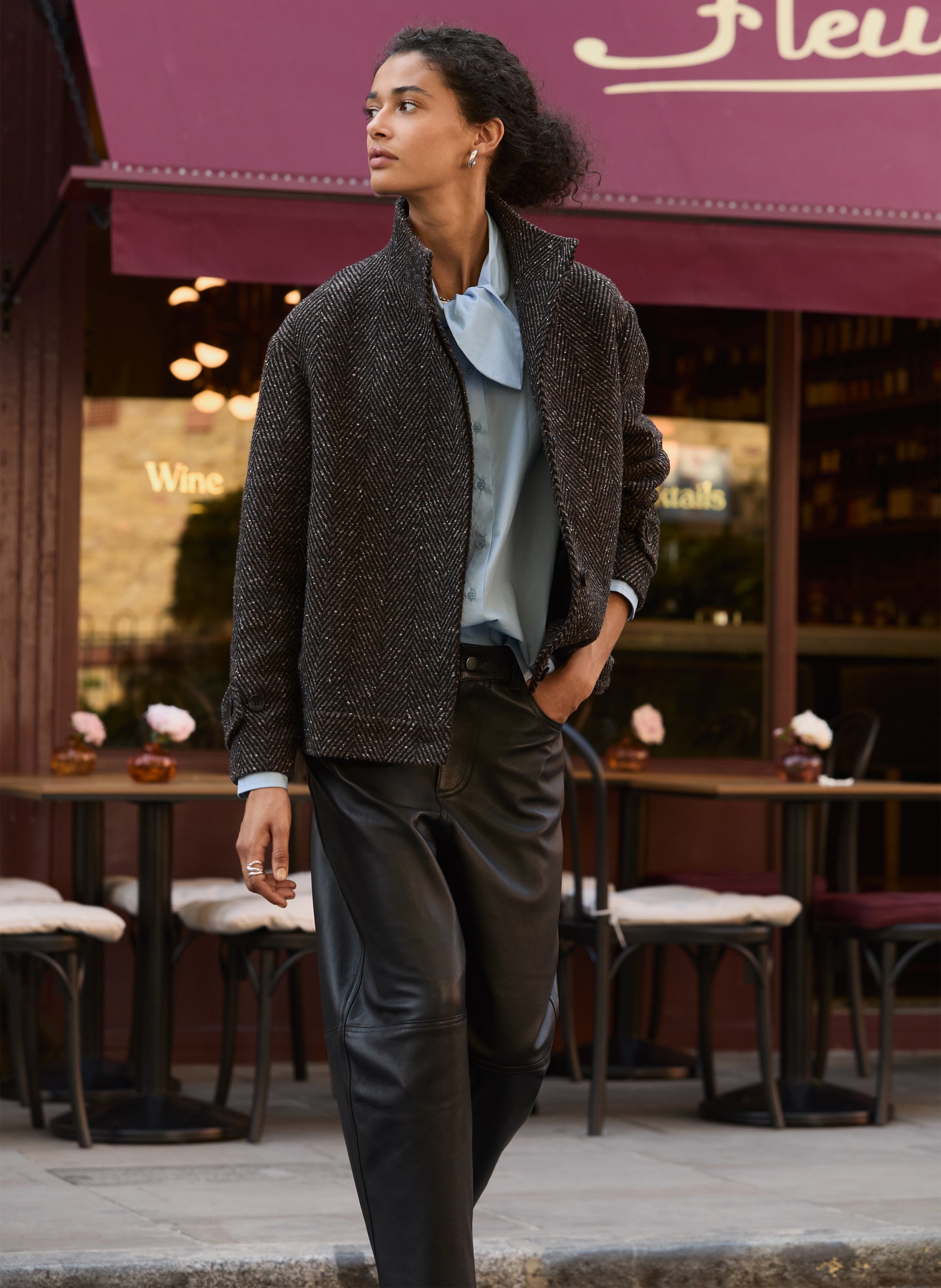 We’ve taken a formal fabric and applied it to a casual cut to create the Janine Wool Coat. This unique style proudly comes in a recycled wool blend in brown herringbone, making it a versatile option to see you through autumn and winter over your go-to pieces. It is elegantly topped with a chic funnel neck, concealed button fastenings, and a pair of welt pockets.