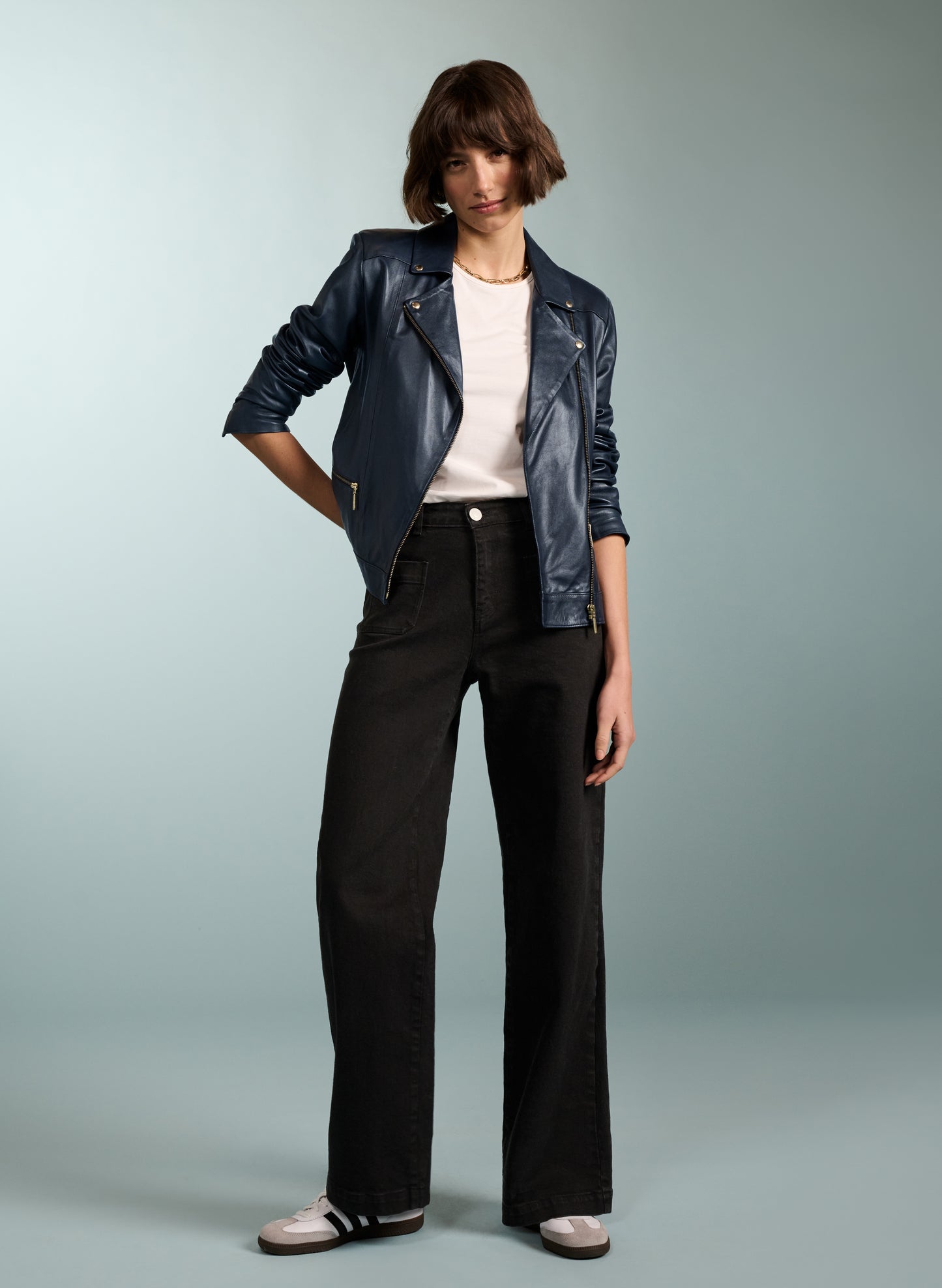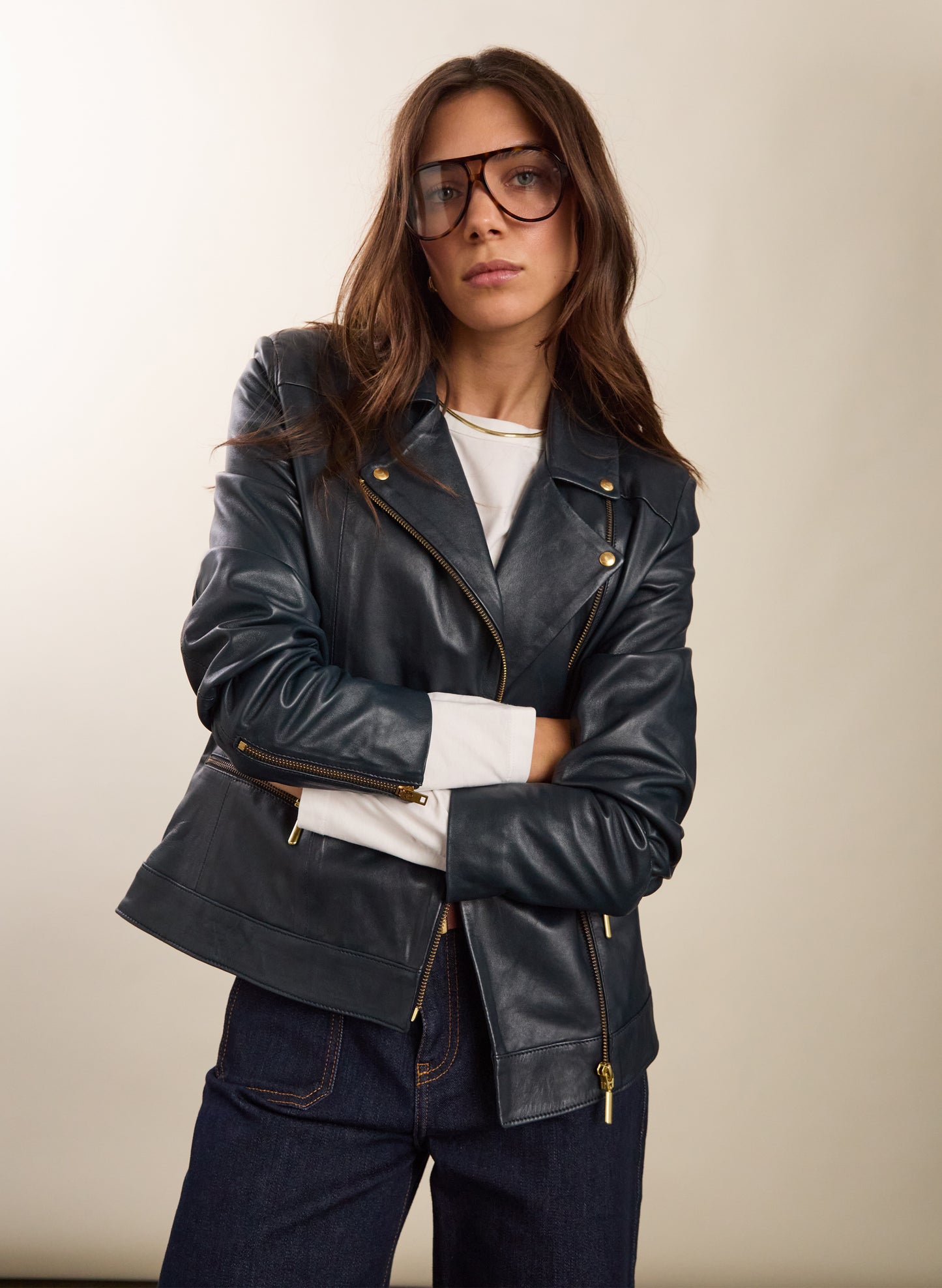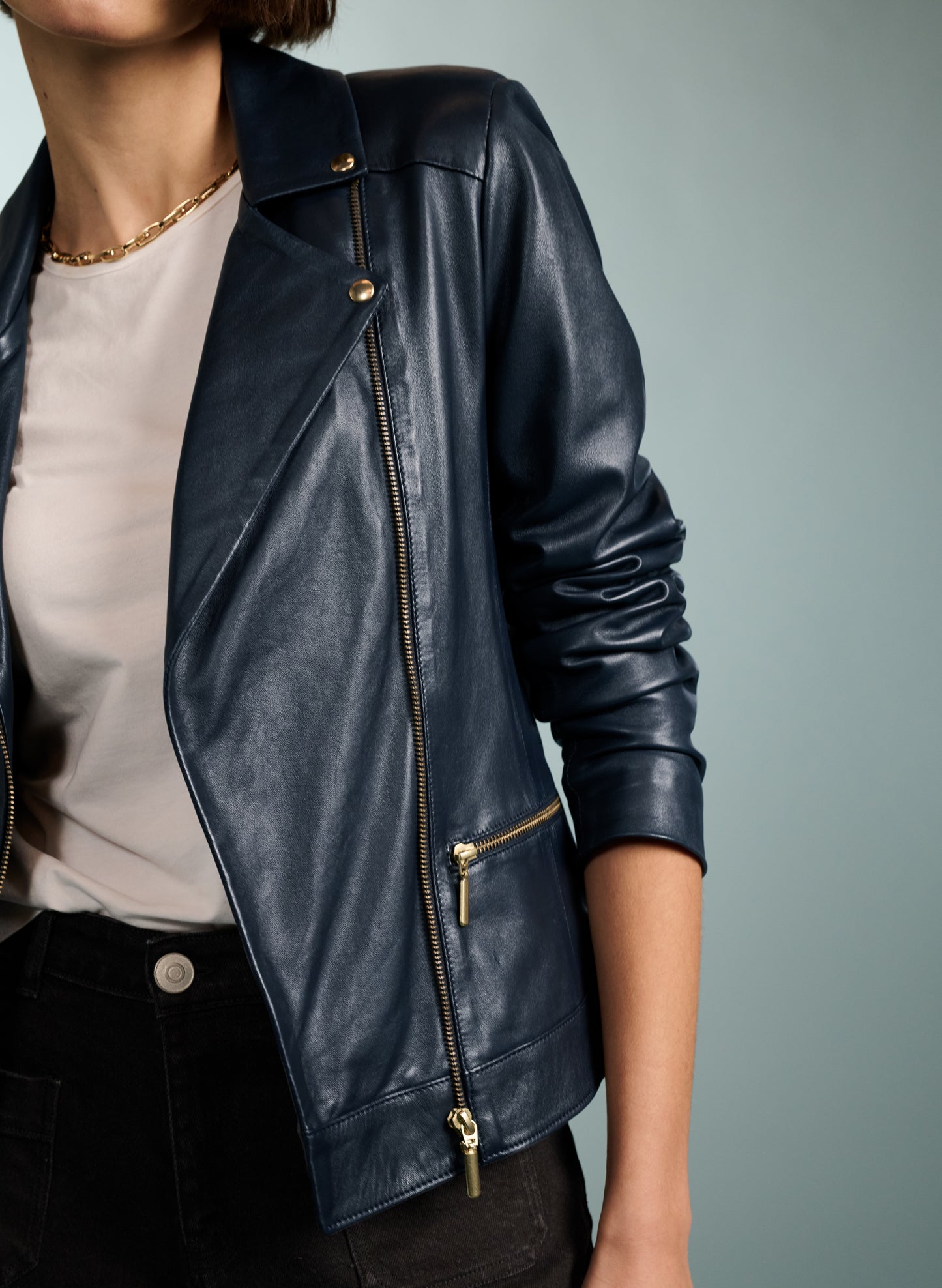 A Baukjen best-selling classic! If you’re after a biker jacket with a feminine fit, then Kara is the one for you. Subtly tailored around the waist, it features soft shoulder pads for definition and is cut slightly longer on the body. We’ve topped it with gold hardware. Kara is crafted from butter-soft premium European leather and made in a family run atelier in Portugal. The ultimate transitional jacket, we love it with dresses or denim. Also try the sports-luxe look by wearing it over a sweater and joggers.