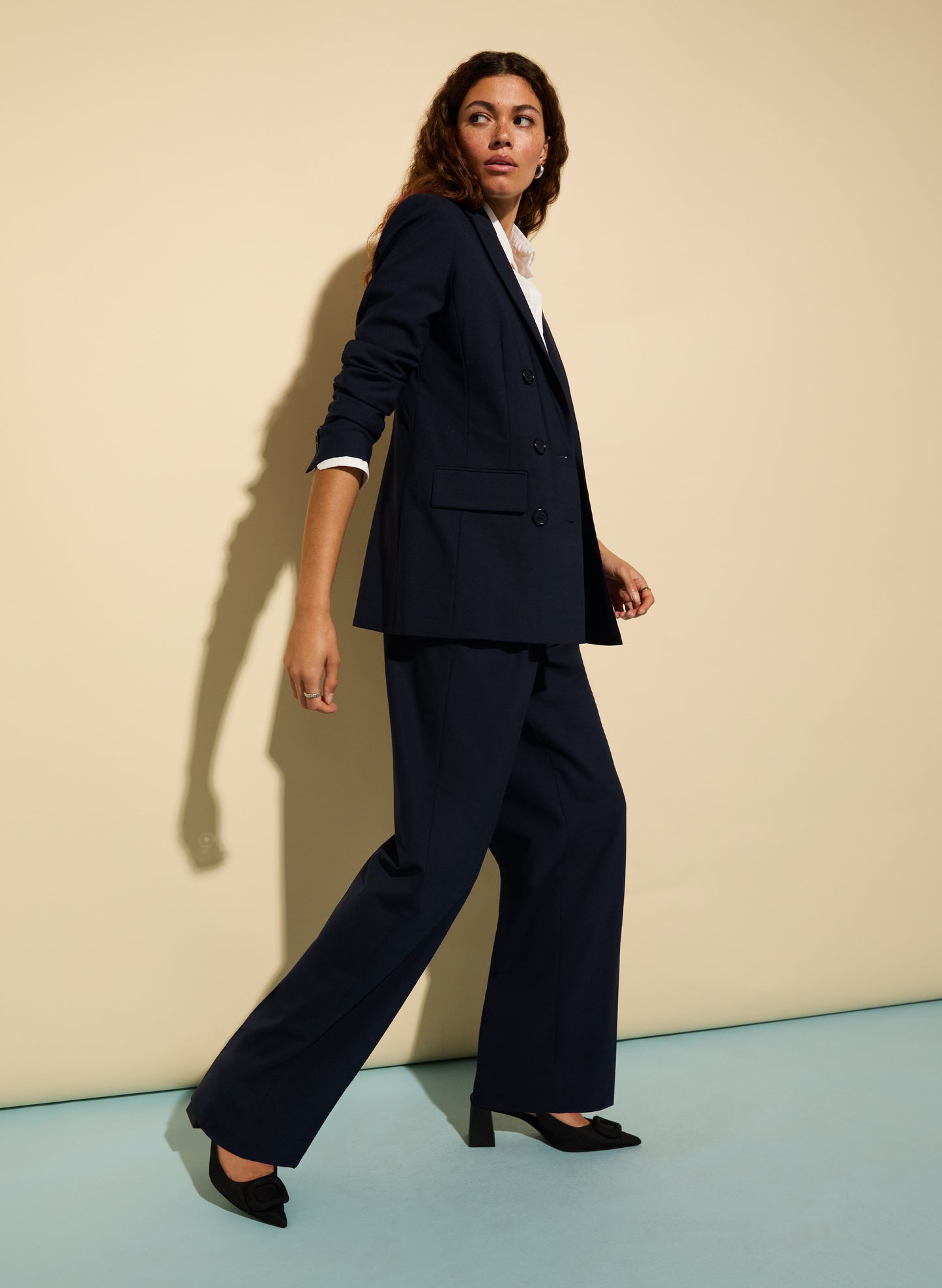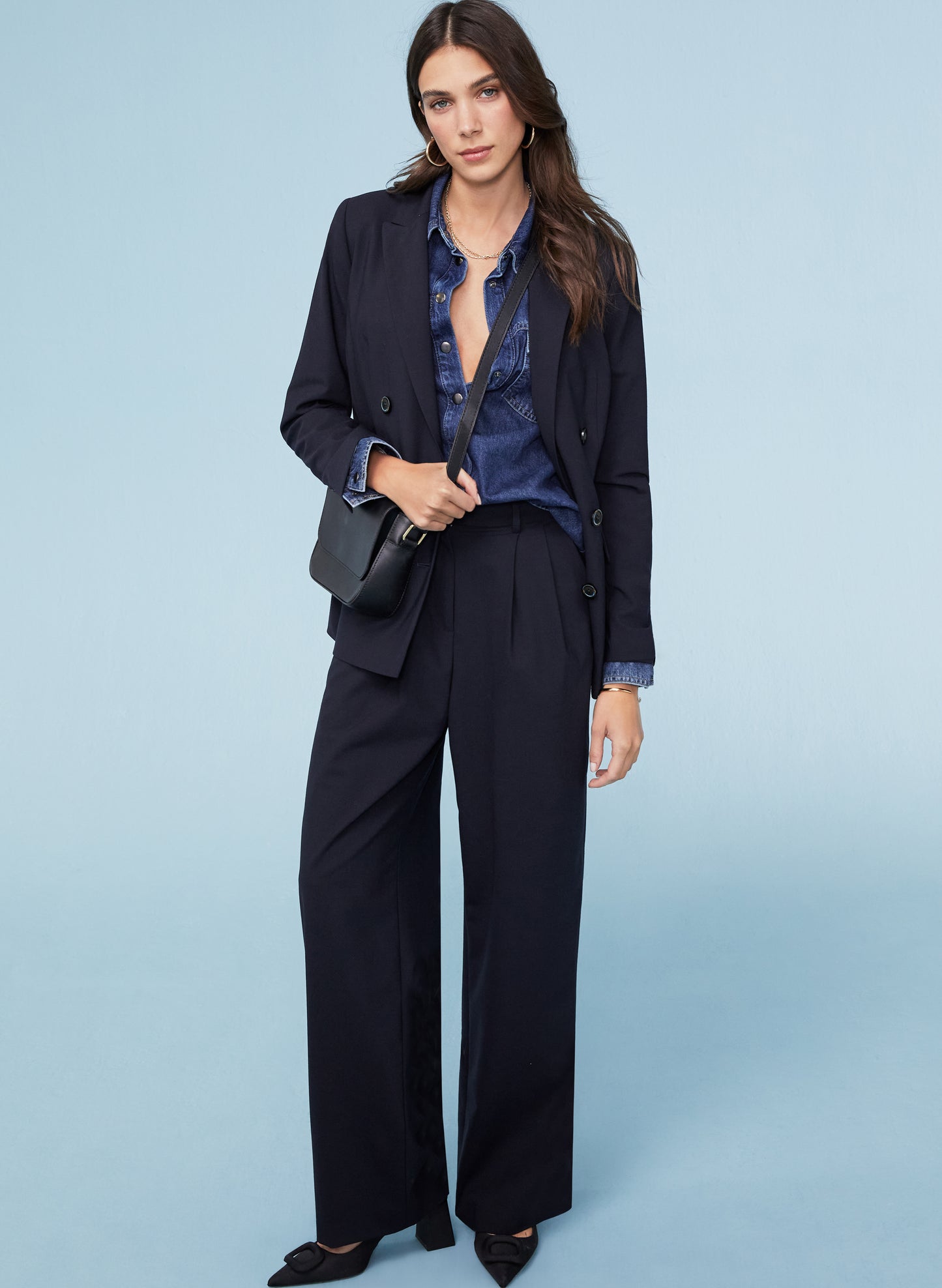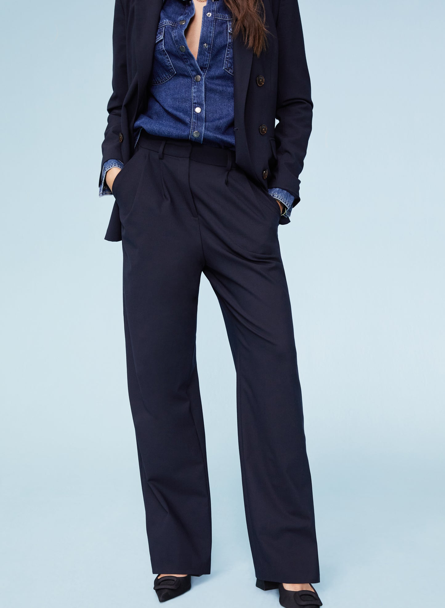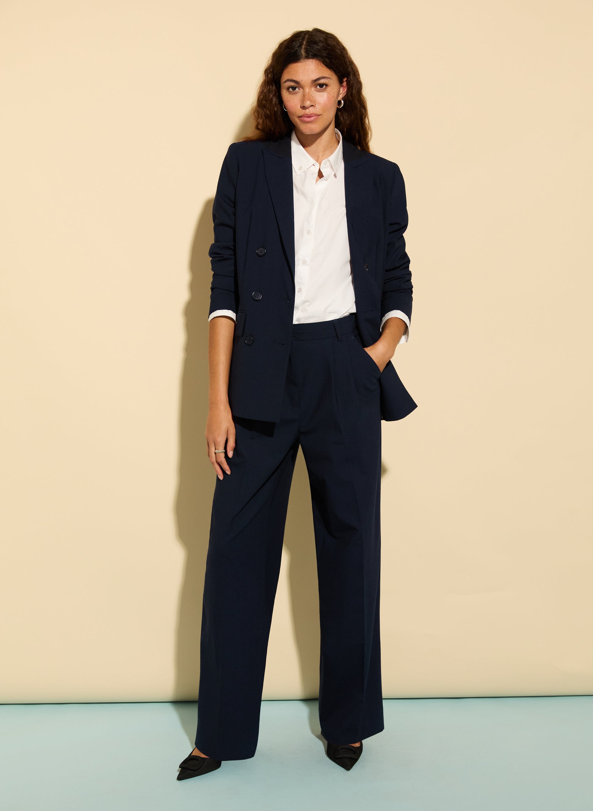 Wide-leg trousers aren't going anywhere, so we've created a tailored style in versatile, classic navy. This borrowed-from-the-boys style is made using fabric which would otherwise go to waste, and cut with a pleated front. Style them with a little black top and trainers, or with the matching Vanity Blazer and heels for head-to-toe co-ordination.