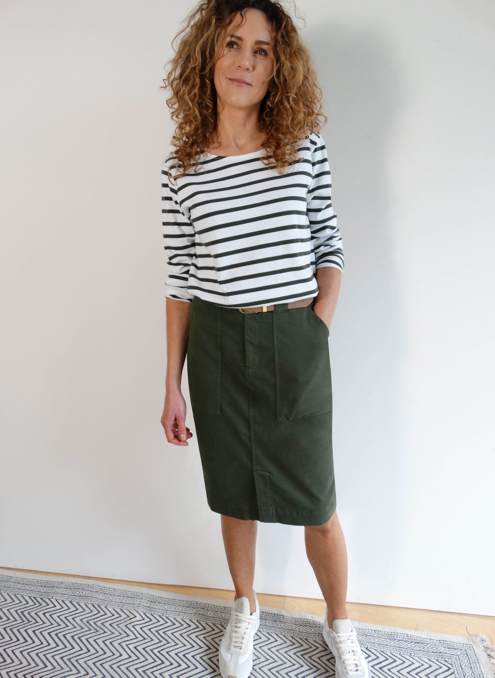 Meet Mahlia, the perfect skirt for off duty days. A casual take on the classic pencil skirt, this is a winner for that effortless, weekend look. In soft brushed cotton twill and featuring on trend utility detailing that you'll want to wear all year round.