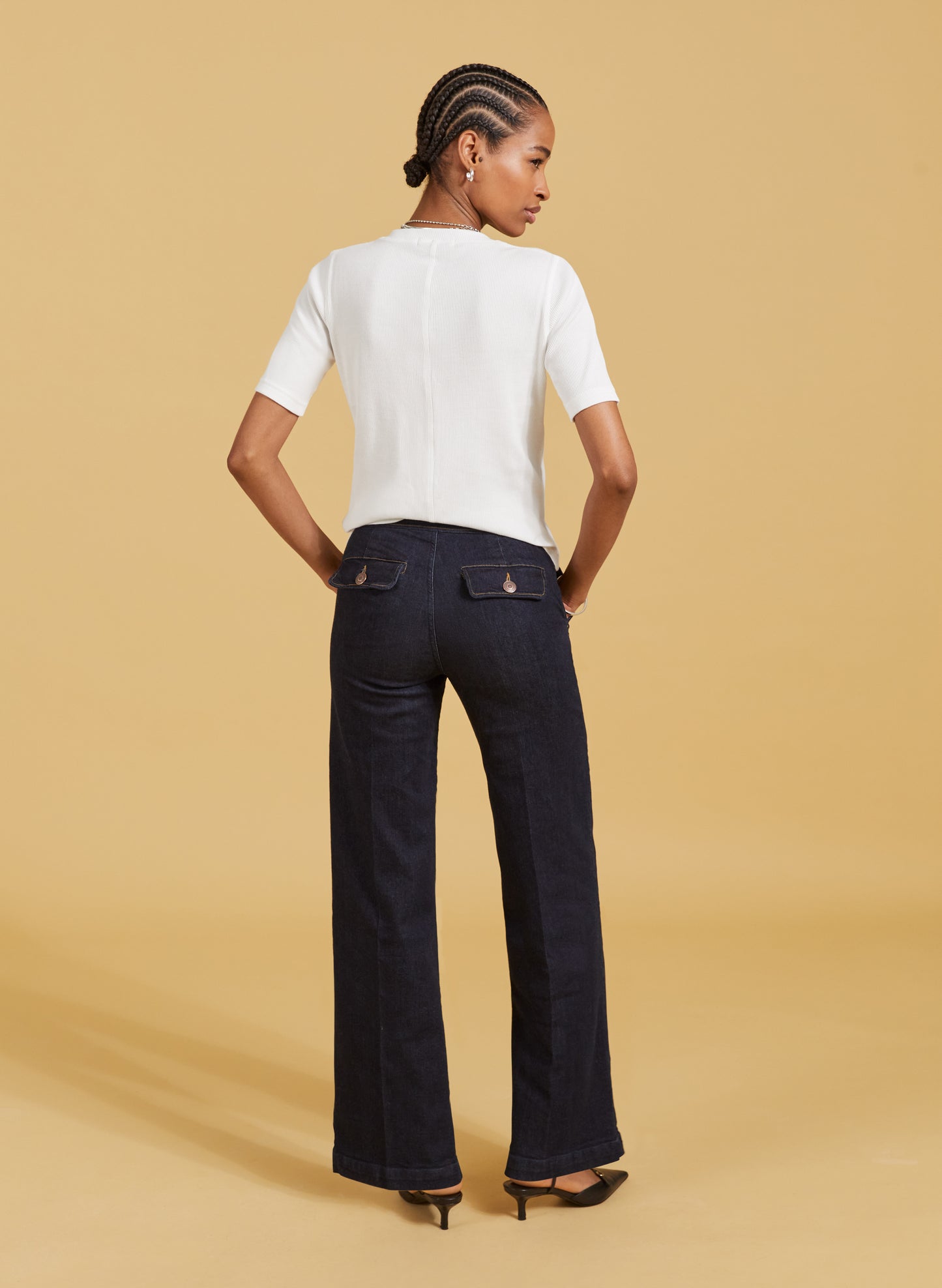 After a pair of ‘smart’ jeans? The Margot won’t disappoint! This style is crafted from organic denim for a more elevated and elegant feel. Their super-flattering silhouette borrows the wide leg shape of the 1970s and we’ve concealed the hook and zip fastening to keep the effect sleek. Wear them with a shirt and blazer for work, or with a ruffled blouse and boots for a date night.