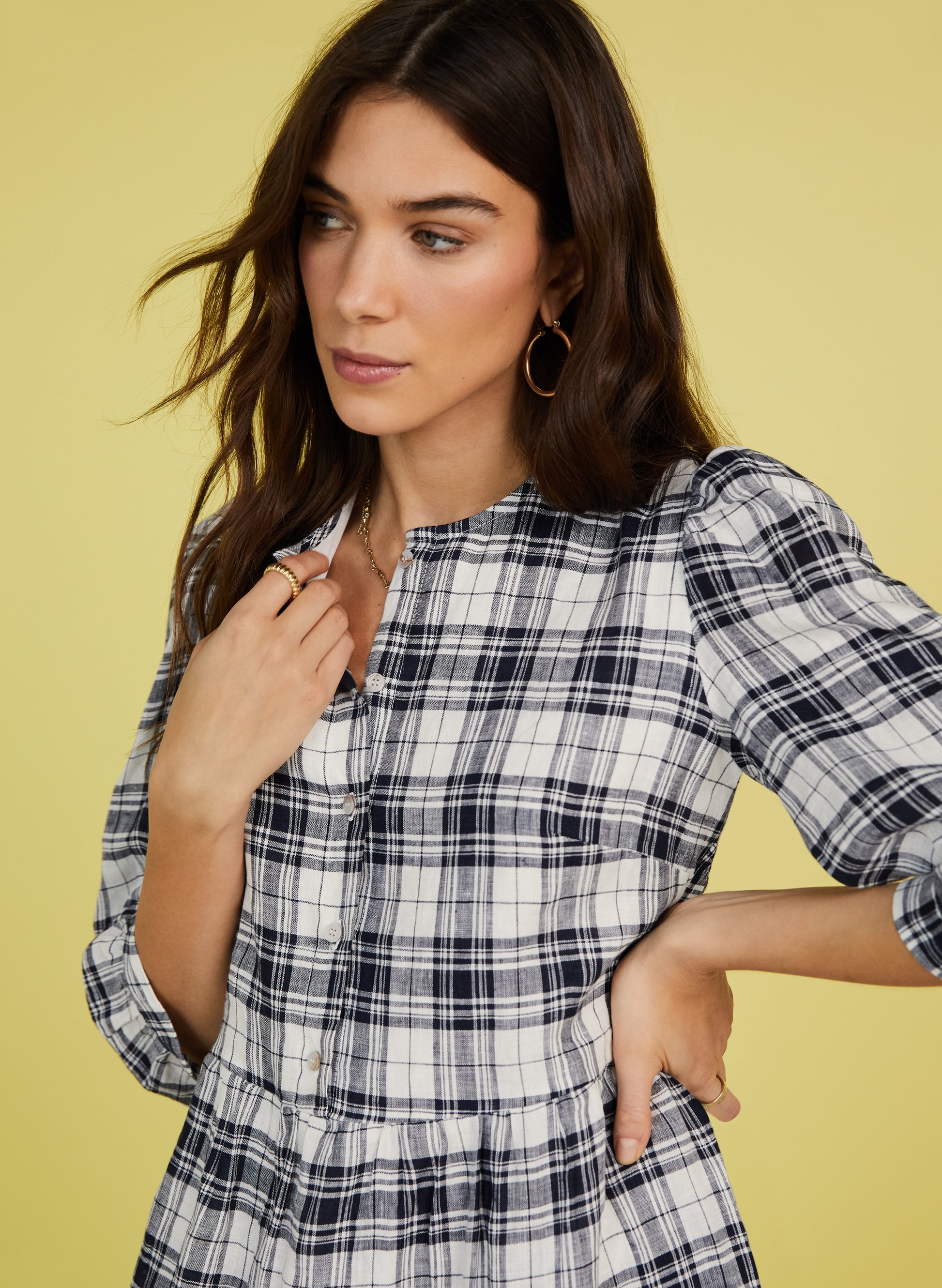 Maria is the ultimate in easy, trans-seasonal dressing. Crafted in linen to keep you cool on warm days, its midi length and sleeves also provide coverage when the weather is proving unpredictable. Its relaxed shape with button fastenings to the waist and tiered skirt is the ultimate in pull-on-and-go dressing. Simply add sandals or sneakers.