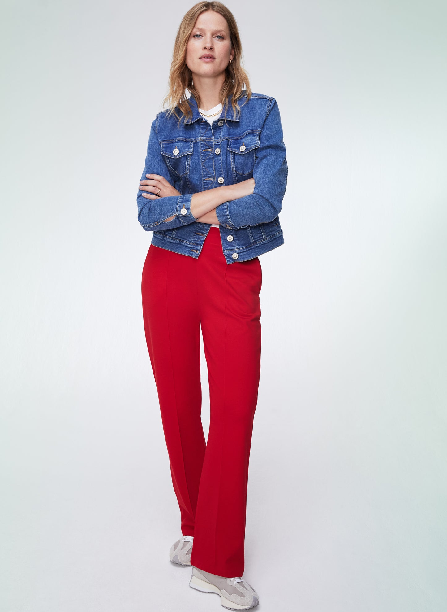 Blending the comfort of a jogger with the cut of a tailored trouser, the Marian might just be our favourite new trouser. This wide-leg style is crafted in heavyweight ponte, a wonder material that is both stretchy and structured, making for very happy legs indeed. An easy, pull-on style with an elasticated waist to the back and clean panel to the front, the crisp pintuck detail tops them off.