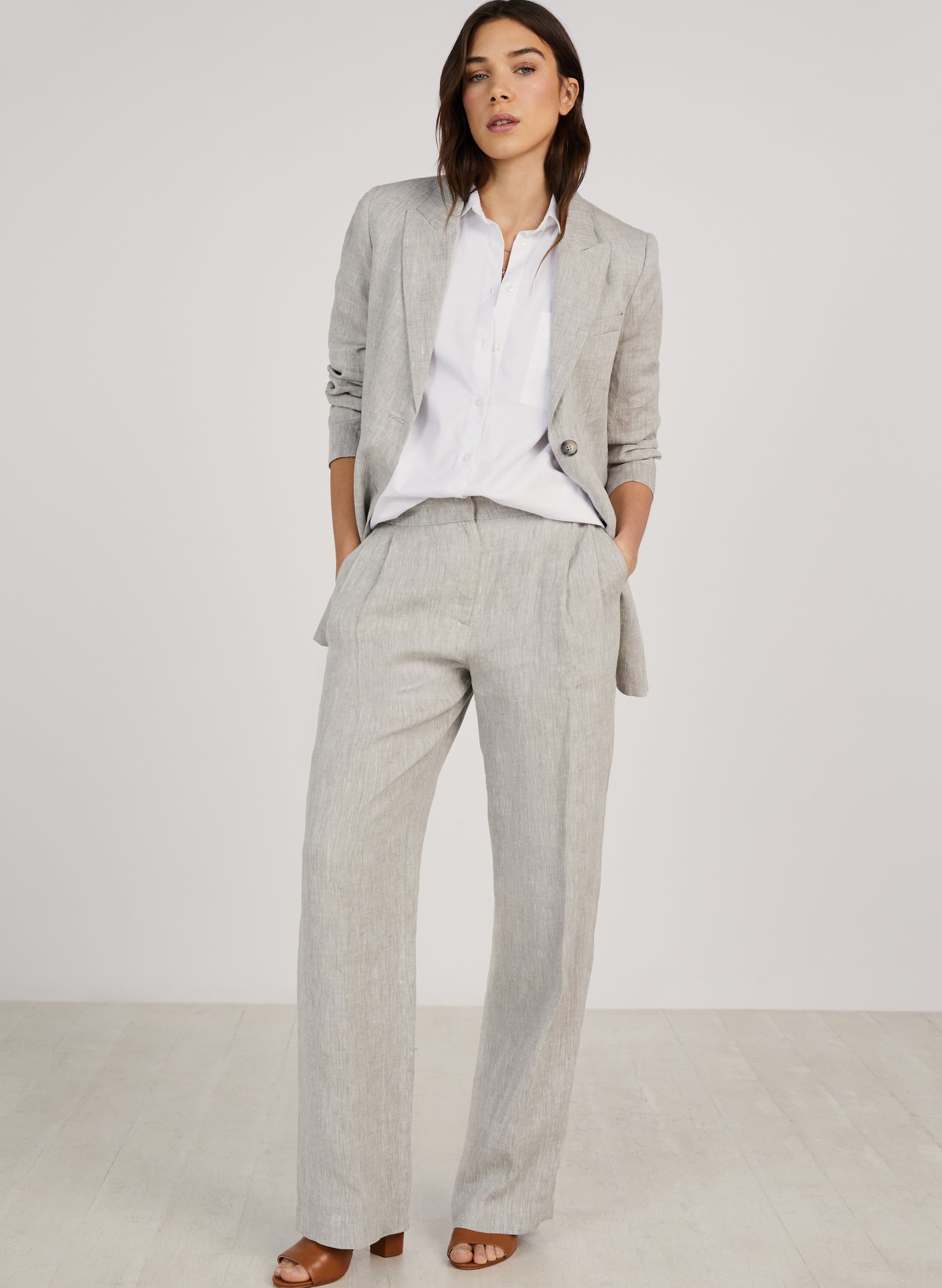 Need a pair of cool summer trousers for work? Or simply after an alternative to jeans and chinos? The Maxine come in washed hemp with a wide leg and pleated front for that touch of contemporary tailoring. Wear them with a strapless top like Tina, or a ladylike blouse like Ishbel, and be sure to look up the matching single-breasted Maxine Blazer.