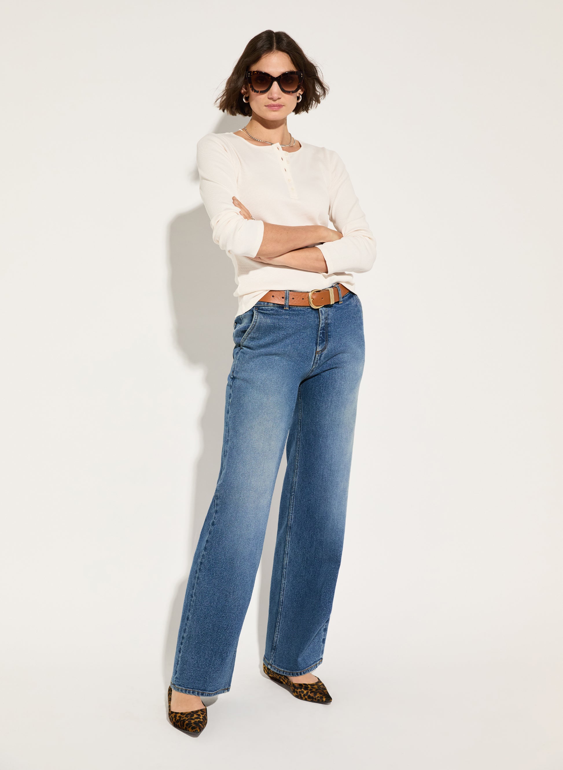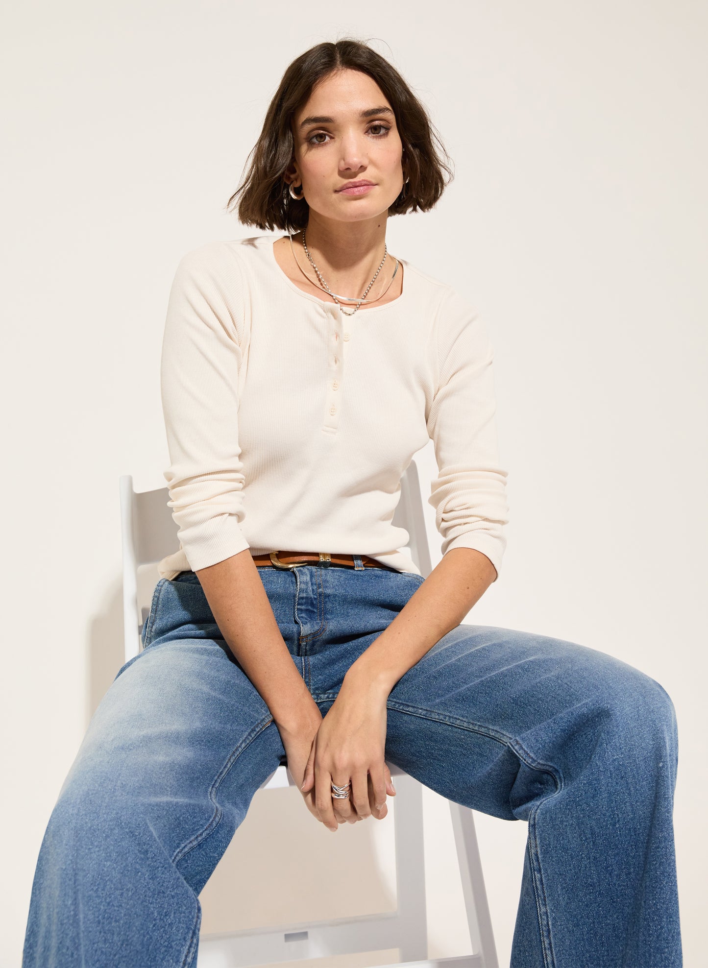For casual days, your denim will love this new Henley Top. Cut for a flattering fit, it’s made from soft organic ribbed cotton and features a simple crew neck with a half-button detail. Wear solo or under blazers and cardis.