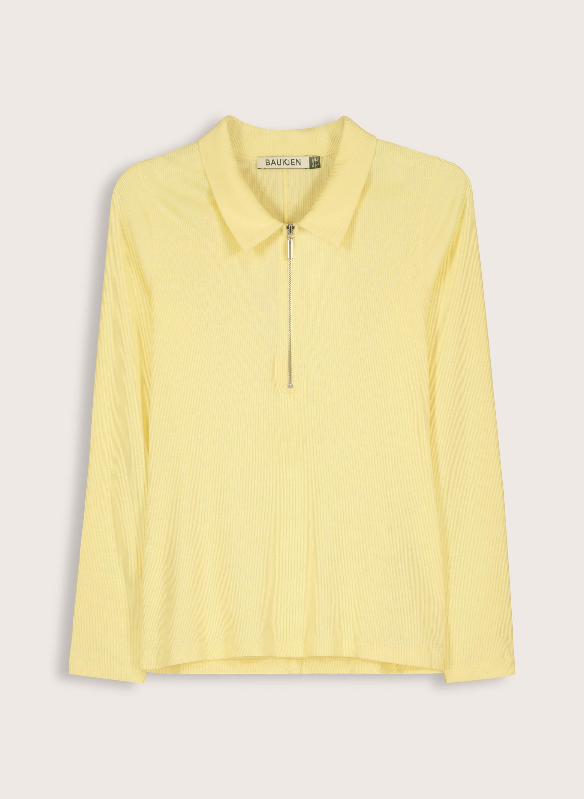 Our Organic Cotton Zip Collar Top has proved a runaway success. Straddling the smart‑casual balance with a neat collar detail and soft organic cotton rib fabric, it effortlessly elevates a pair of casual jeans and works with tailored separates for going into the office. Now available in a soft shade of butter yellow, it will add a mood‑lifting colour into your wardrobe.