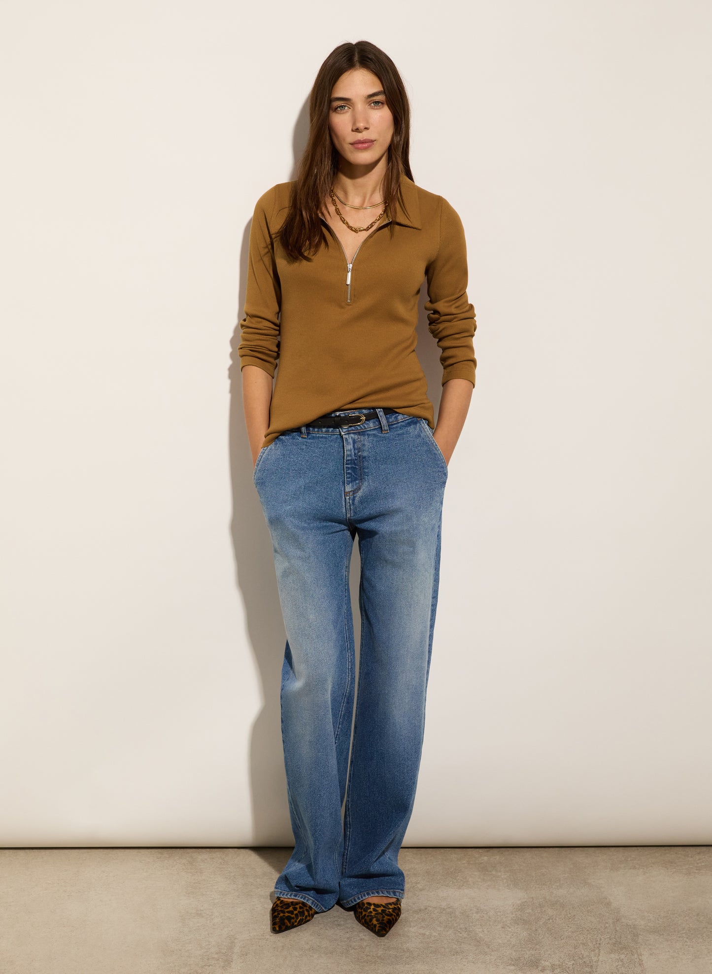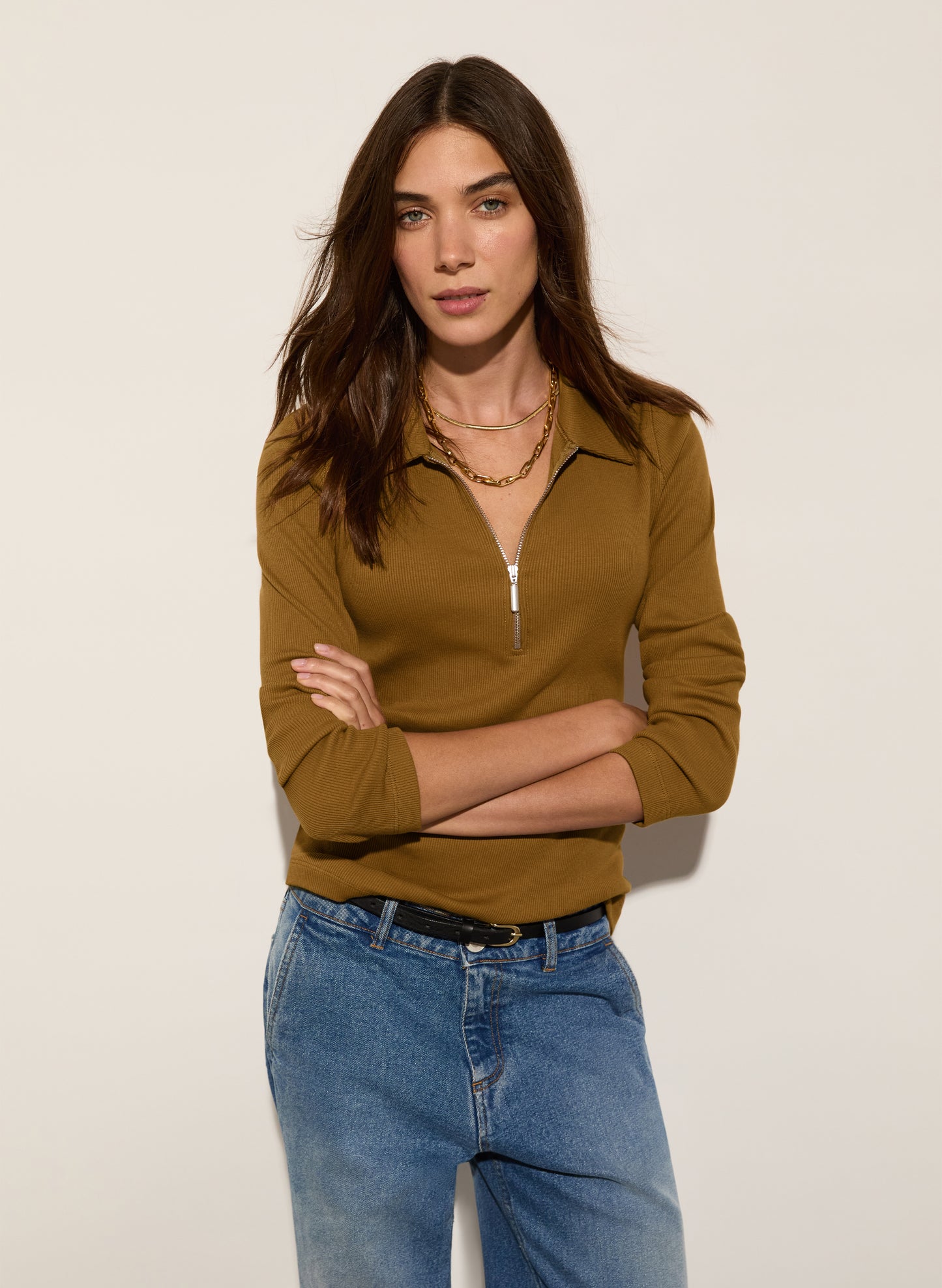 Well-designed, beautifully cut basics are the cornerstone of an easy and feelgood wardrobe. This simple style in Camel straddles the smart-casual balance effortlessly, thanks to its soft organic cotton rib fabric and neat collar detail. Its half-zip neckline provides a touch of modernity: wear it open to show off your favourite pendants or fully zipped for a preppy feel.