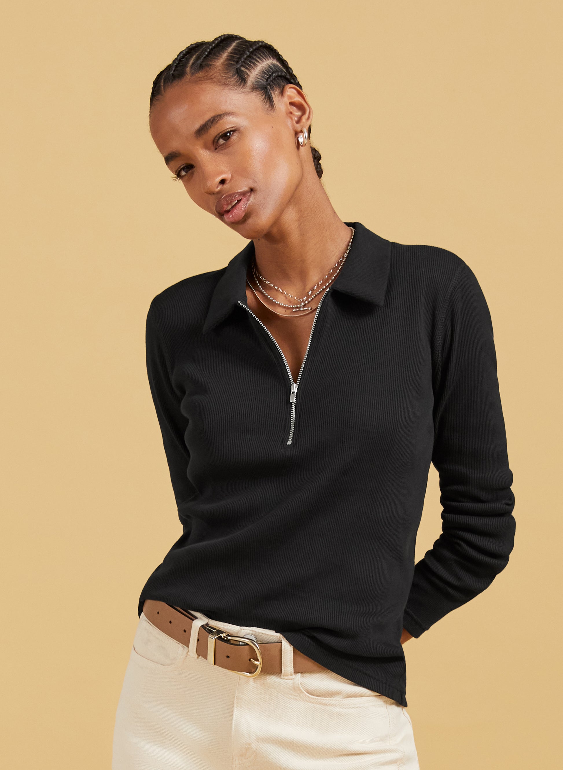 Smart-meets-casual with this easy top. The neat collar and organic cotton composition makes it an interesting alternative to a classic shirt, while its half-zip neckline allows for experimentation. We’ll be wearing it open with our favourite chain necklaces on show.