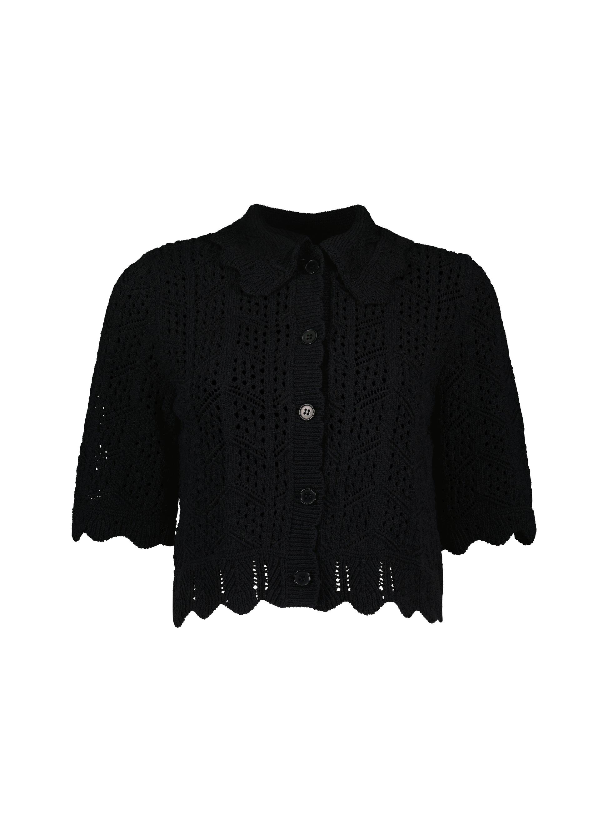 We’re so in love with Pearl that we’ll be wearing it at every given opportunity! Either as a light cover-up over a or as a top with a vest underneath. This crochet-style cardigan is cut for a short, boxy fit, and adorned with scallop edges around the collar hem. Best of all, it’s made from ECOTEC®, a recycled yarn with a low carbon footprint.
