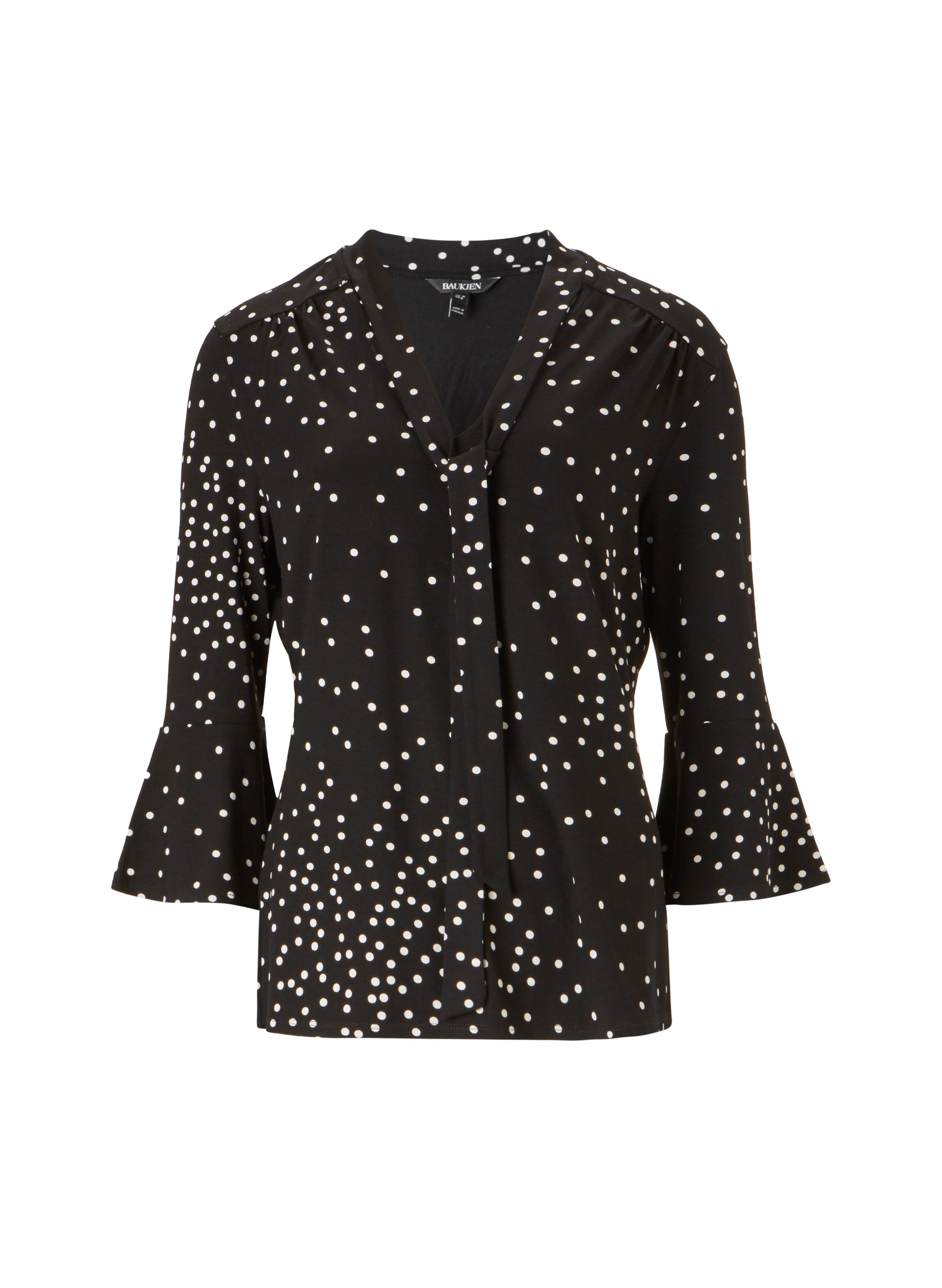 The shape of this top was such a favourite last season, so we have brought it back, with a fresh polka makeover. Why did it get so much love? We think it's down to the tie neck and stylish flared sleeves. Not forgetting the luxuriously soft jersey fabric. A winner in our wardrobes for years to come.