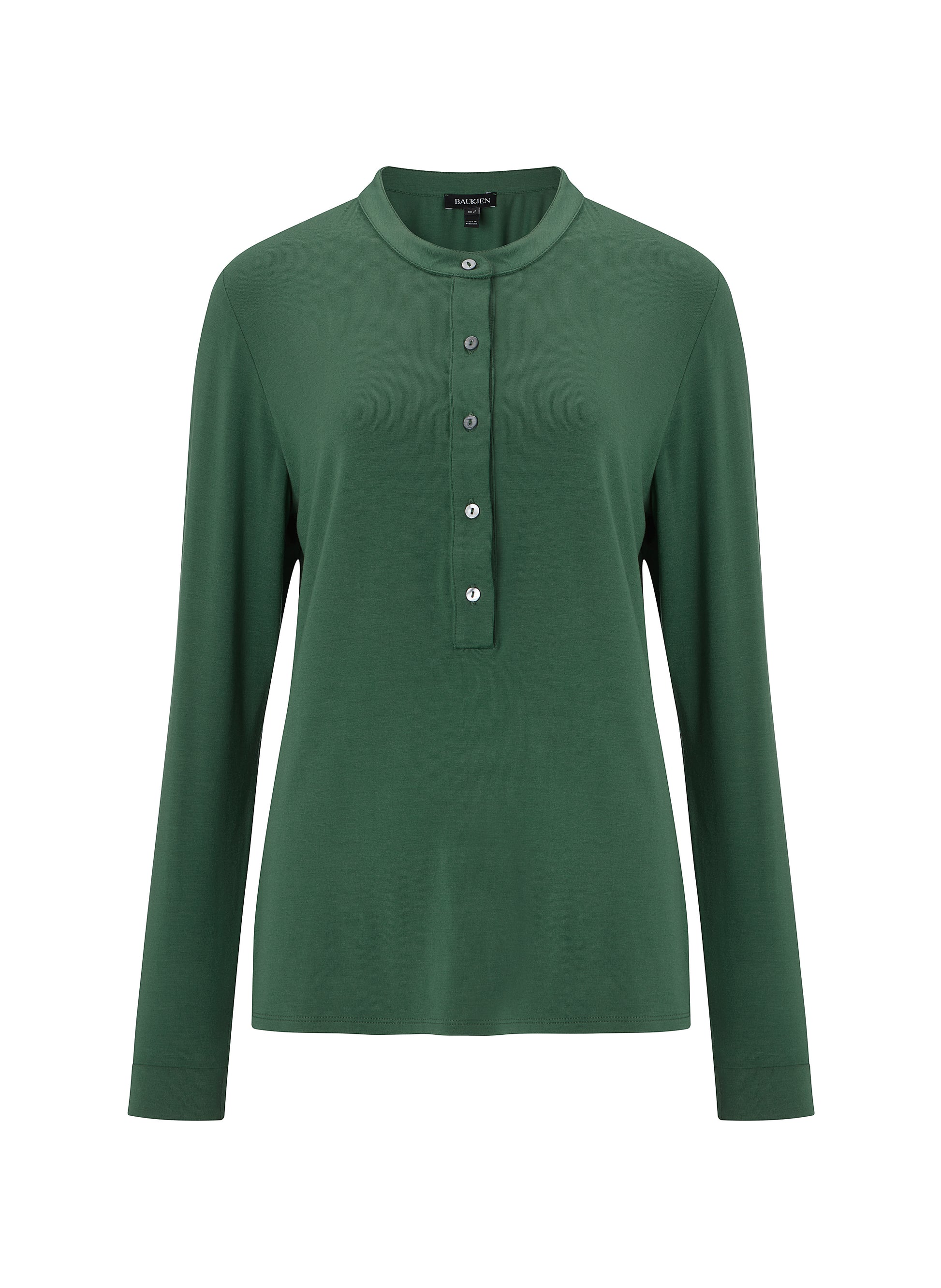 A basic in a natural shade of fern, prepare to live in this top. The Lola has a low grandad-style collar so it’s great for layering - but you can also wear it solo with the button detail opened. Made from LENZING™ ECOVERO™ jersey, it’s elevated comfort at its best.