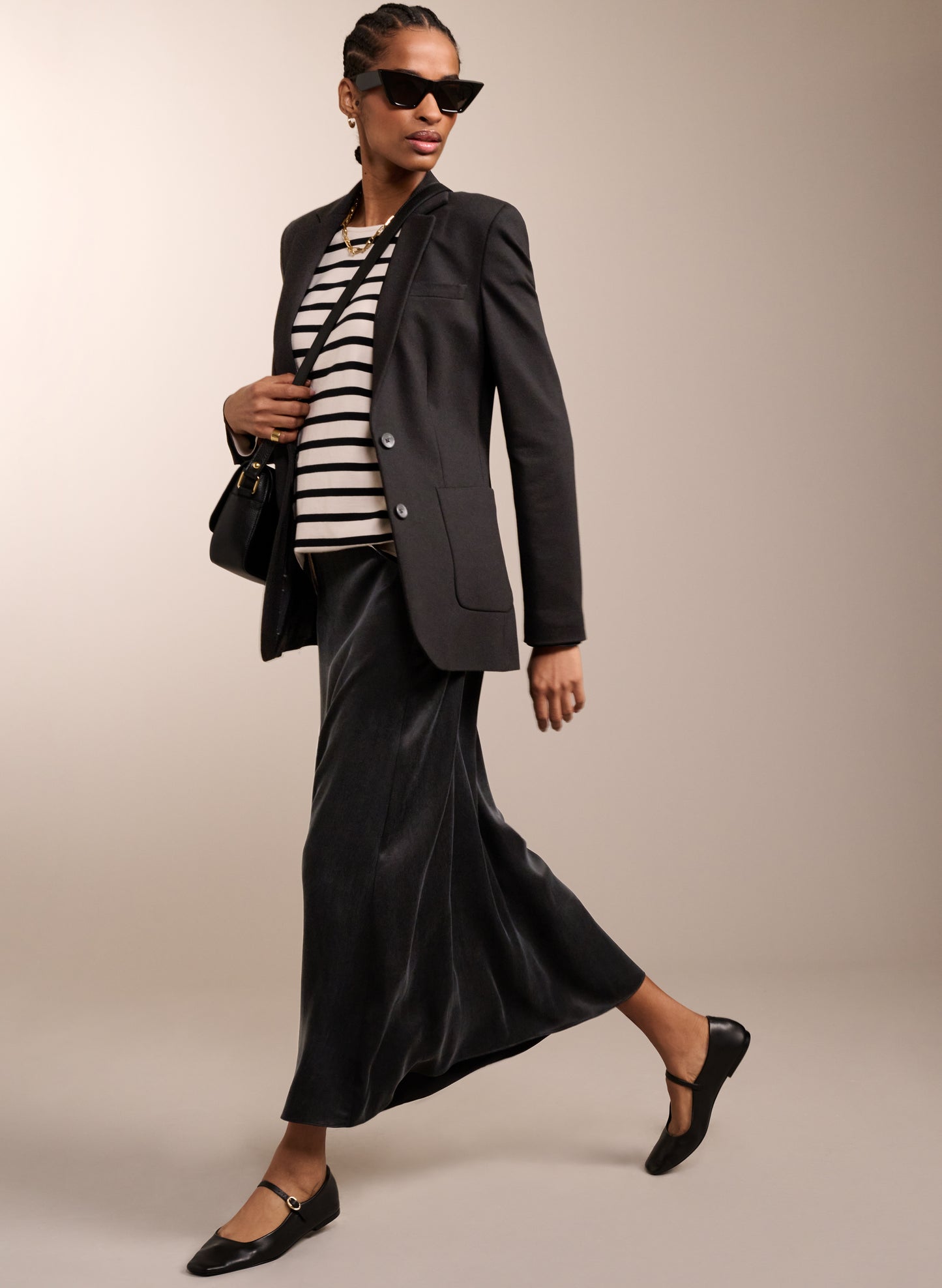 A chic, black slip skirt was missing from our Design Director Natalie’s wardrobe - so here it is! Rahena has a simple, straight cut and goes with everything, from trainers to boots, and sweaters to blouses. A hidden elastic in the back of the waistband guarantees all-day comfort. Oh, and did we mention it is proudly made from recycled fibres?