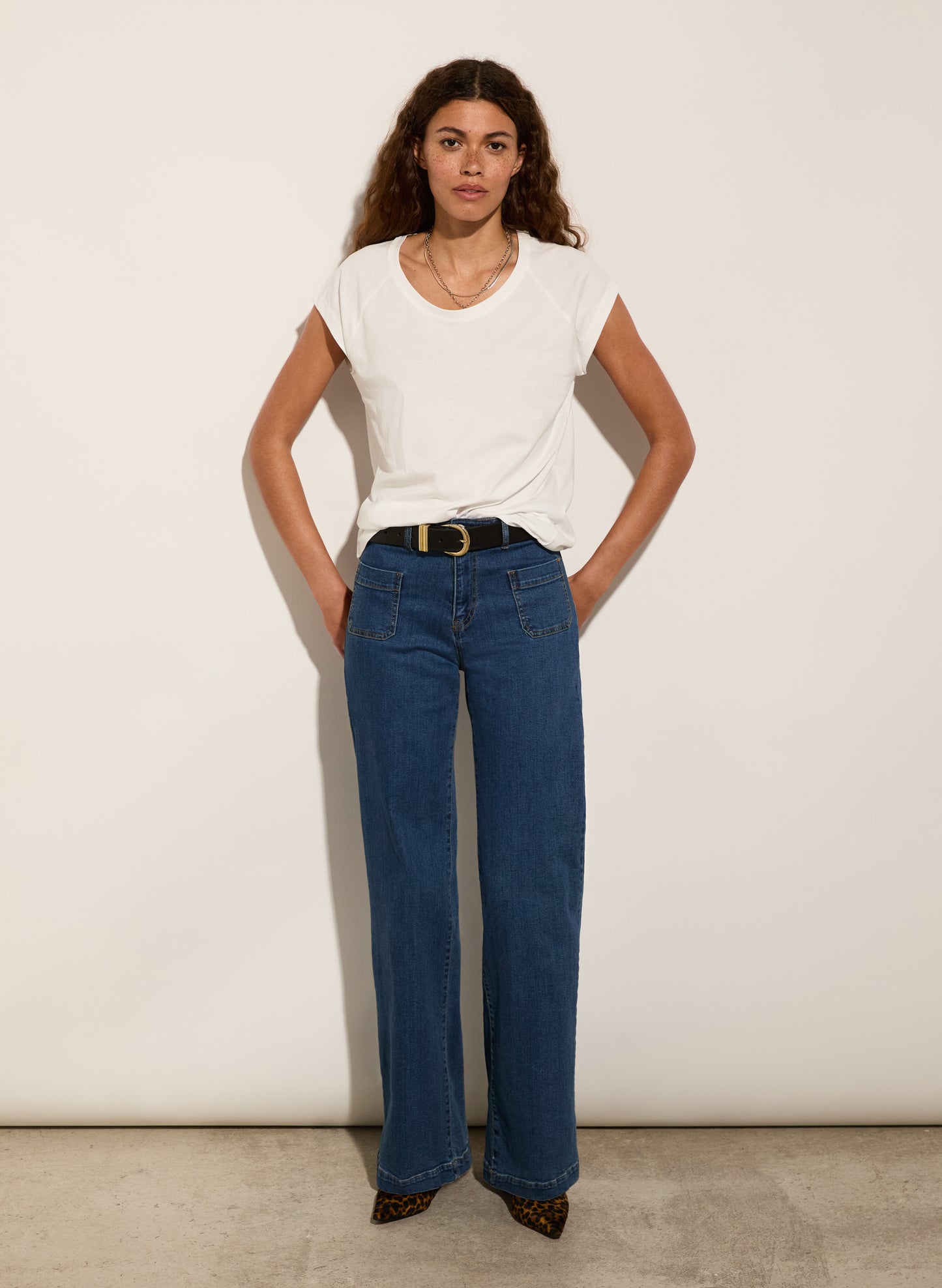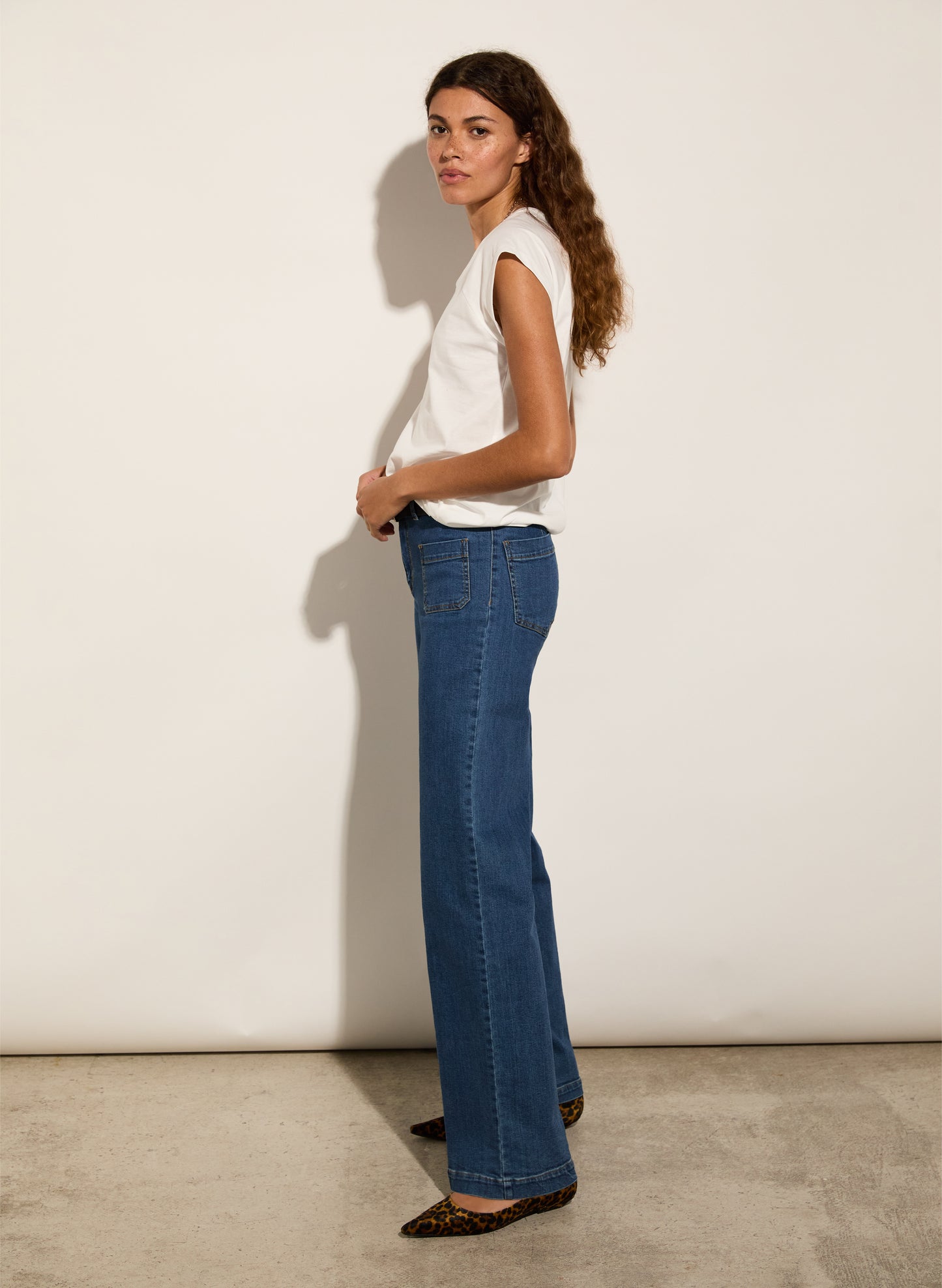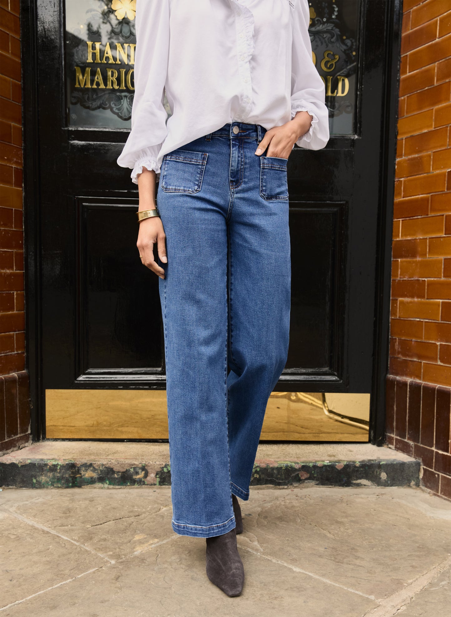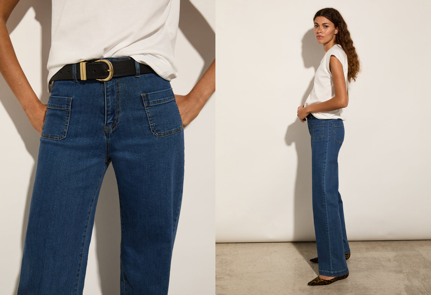 Add a touch of cool to any tee, blouse or jacket with our new Robyn Jeans. This style in washed indigo denim is cut like Lou, with a wide-leg shape that is instantly leg-lengthening and topped with a pair of patch pockets. We’ve carefully considered the fit so that they snugly hug your waist, bum and hips. Crafted in organic stretch cotton, they’re as comfortable as they are covetable, and so easy to style.
