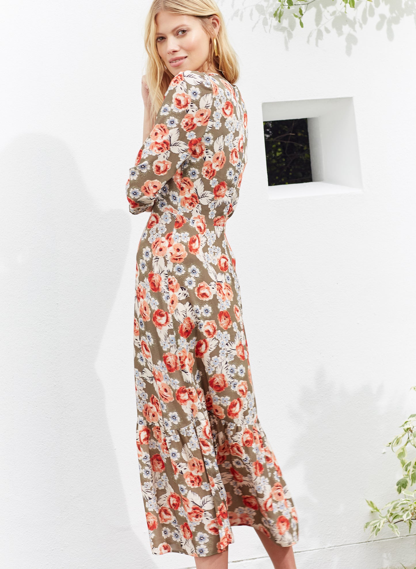 Steal the show with Rosemary, our vintage-inspired floral. Boasting bold botanicals in muted tones that give a nod to the 40's, Rosemary is the dress we'll be wearing all through the season. Teamed with an effortless midi length fit and flattering gathered details, it looks just as good with boots as it does sandals.