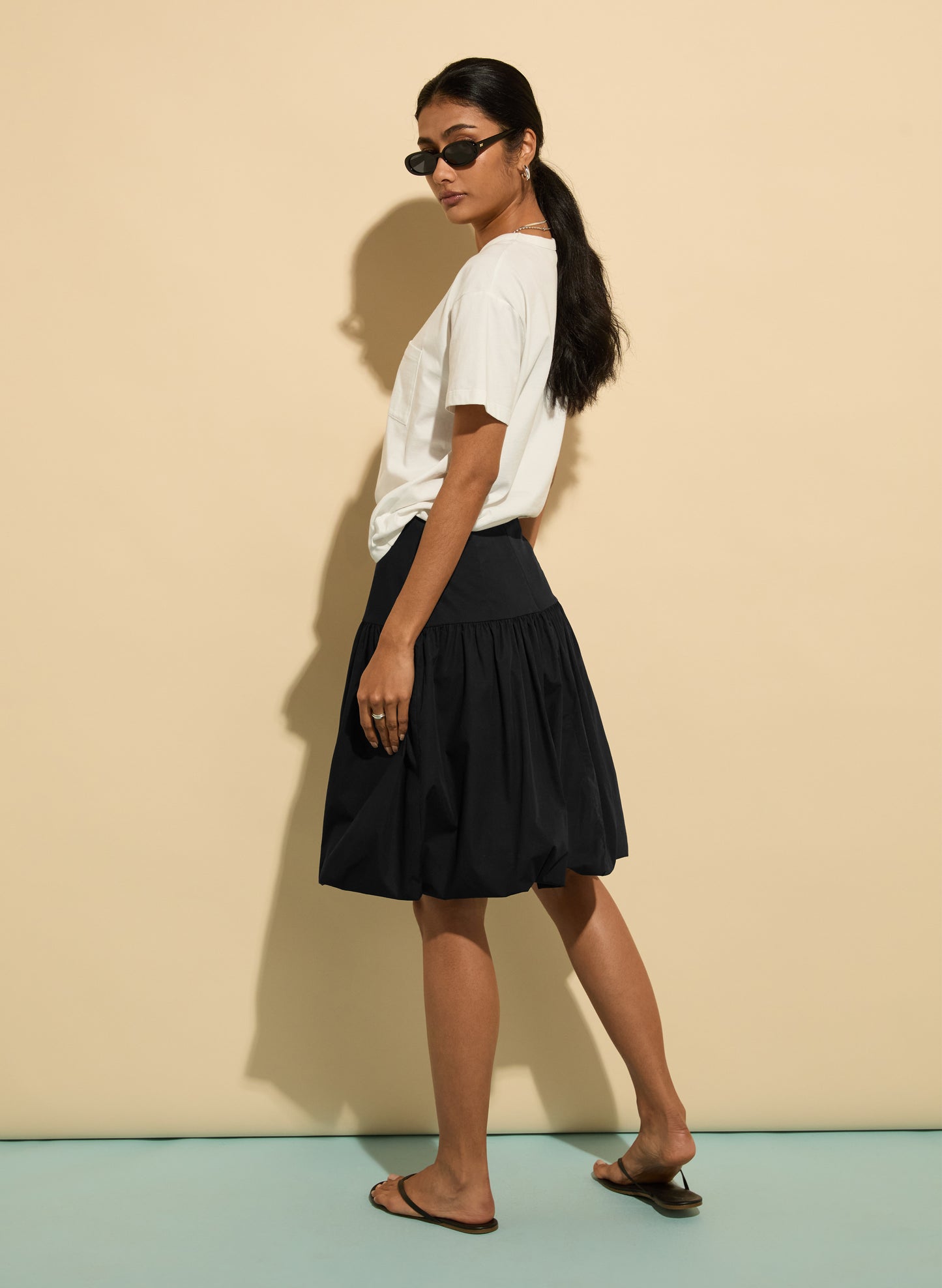 Shake up your outfits by adding the Saffy Puffball Skirt to the mix! Fun and fashion-forward, its flat front is offset with a voluminous skirt in organic cotton poplin to create a playful silhouette. You can wear it both smart or casual: try a denim jacket and Mary-Janes for an easy weekend look or add a crisp shirt and heels for a date night.