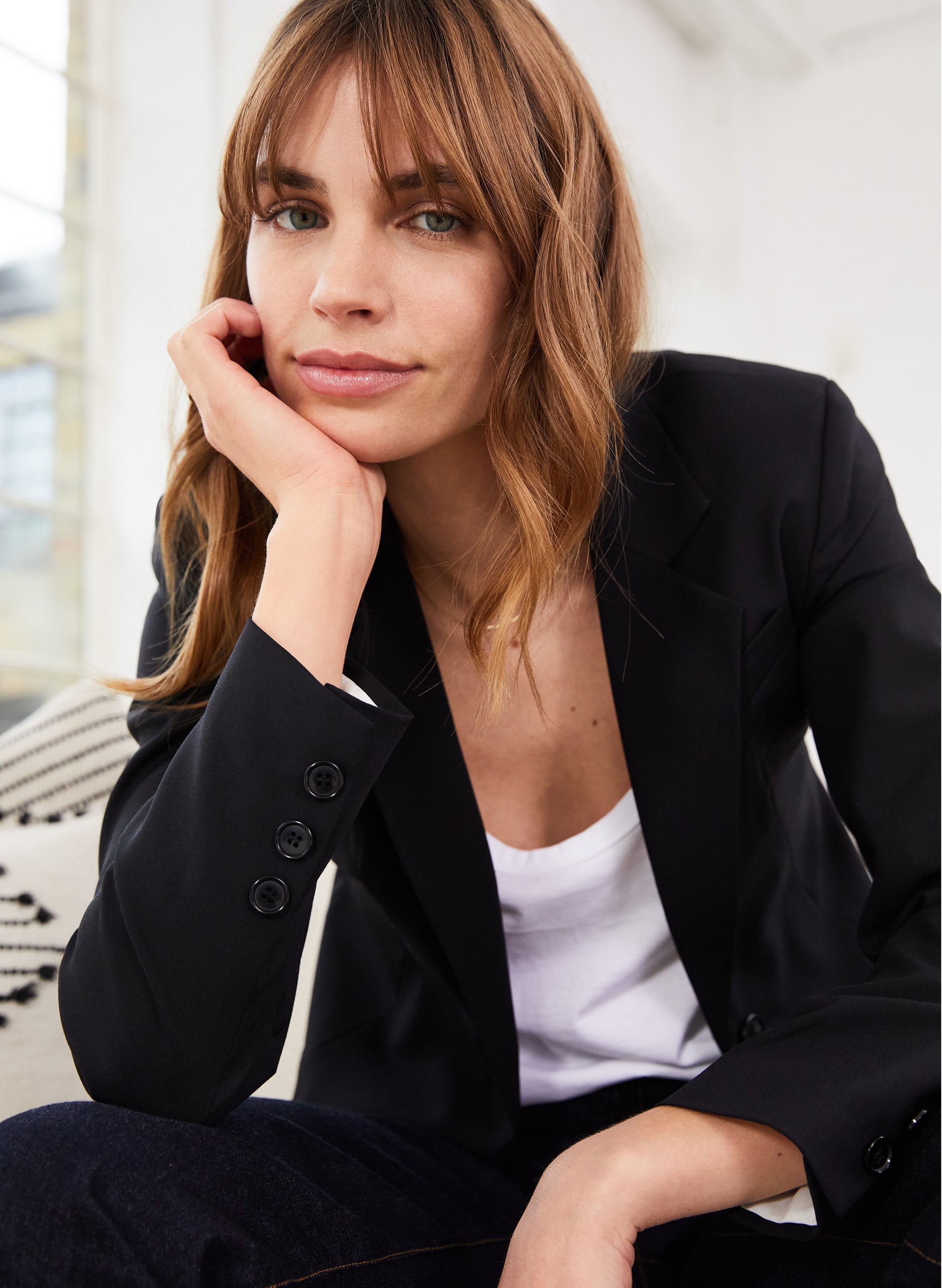 The ultimate tailored jacket to buy now and wear forever, the Sloane comes in what we call a ‘boyfriend’ fit for that cool and relaxed look. Beautifully cut and proudly made from a recycled polyester mix, it’s a contemporary take on a wardrobe classic. Style it with ankle-grazing jeans or printed midi dresses - and everything in-between!