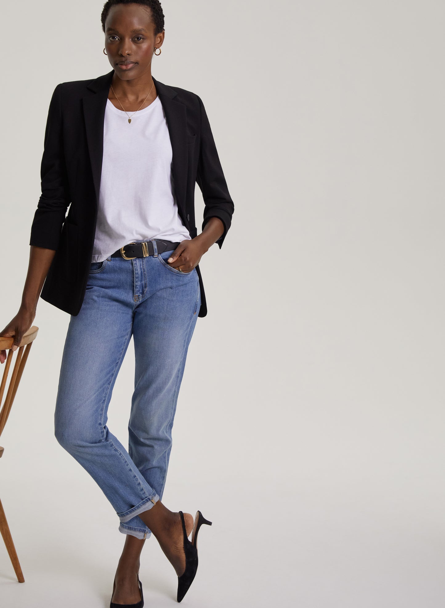 Our best-selling jeans offer a flattering and feminine fit that hug the hips and feature a cropped, subtly tapered leg shape. Of course they are proudly made from eco-conscious organic cotton and come in a variety of washes; new for spring is a ‘dark denim’ which boasts a clean and raw finish for a contemporary spin.