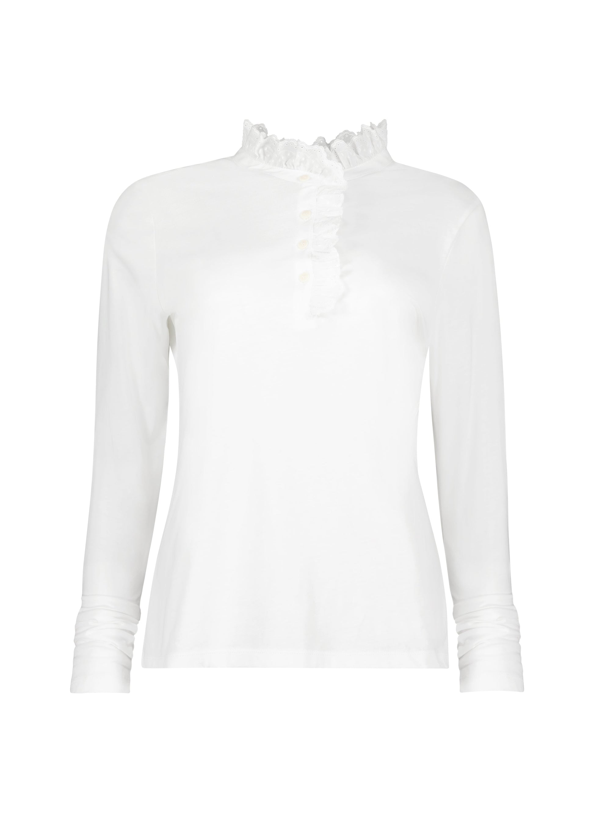 Look no further for a pretty spin on layering. Tricia’s ruffled collar instantly elevates the simplest of outfits thanks to its broderie anglaise embellishment. This detail extends to the placket, meaning you can play around with styling under half-zip or v-neck tops too.