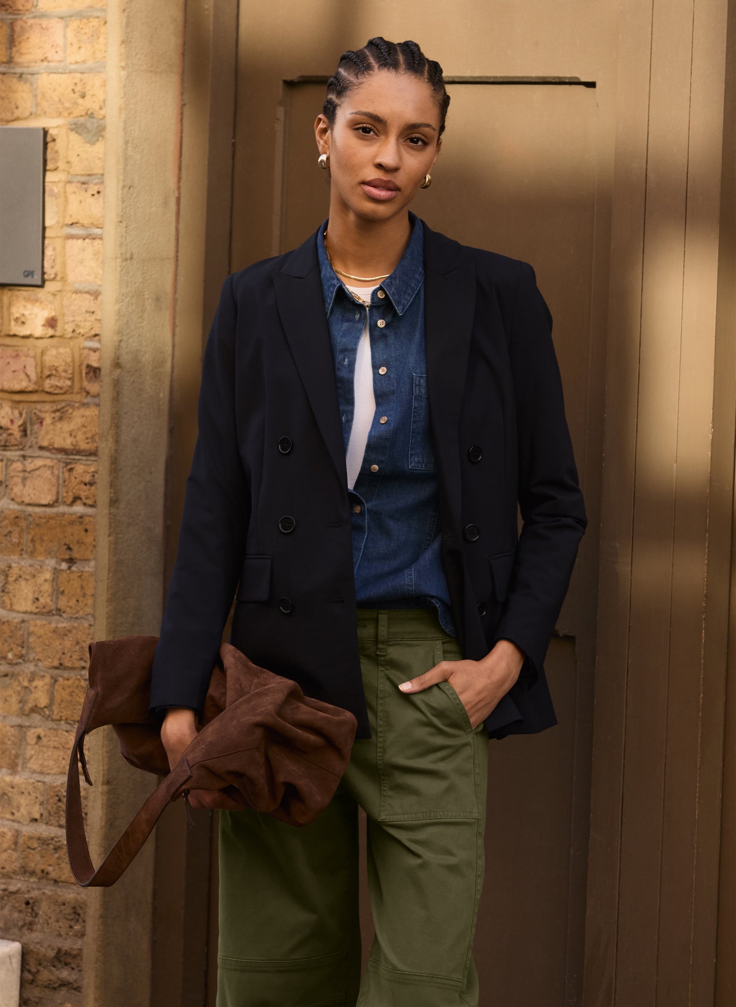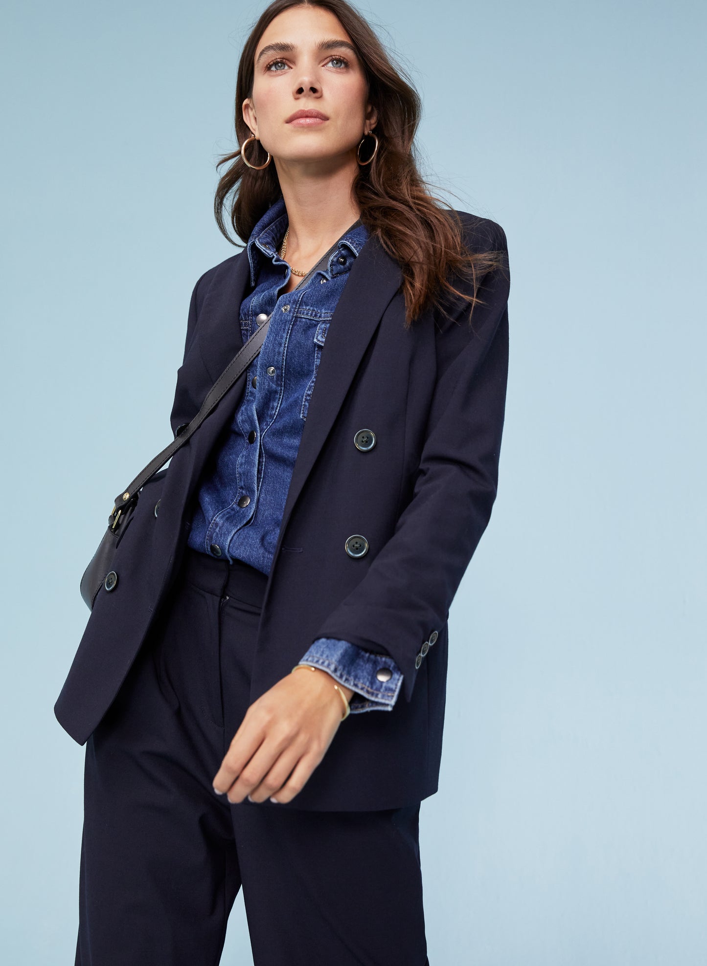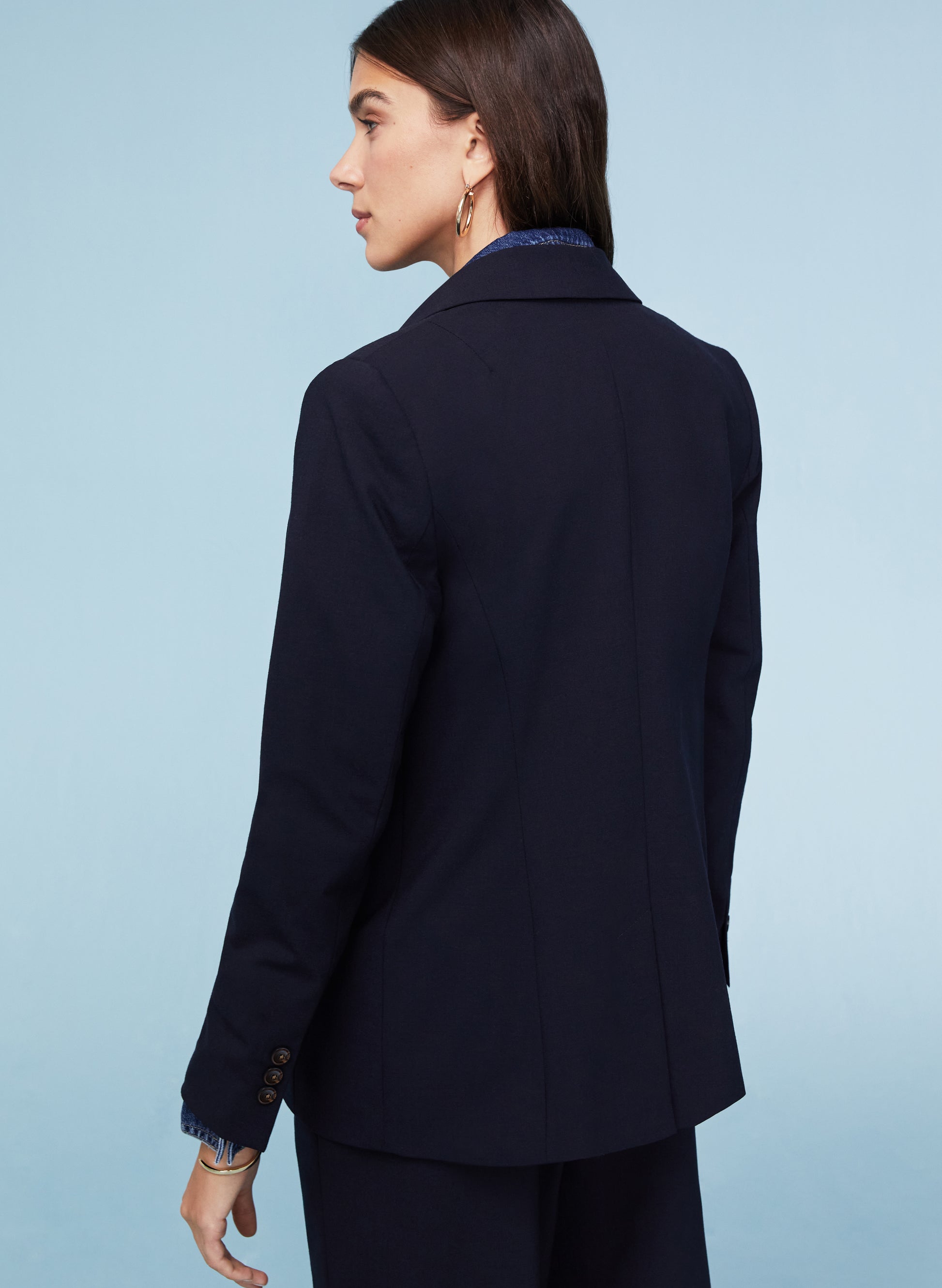 Timeless, versatile and chic, if you invest in just one piece of tailoring this year, make it the Vanity Blazer. This double-breasted jacket comes in a cool, borrowed-from-the-boys fit and in dark navy, it goes with everything. Layer it over a shirt or hoodie, or create a suit with the co-ordinating Magnolia Trousers. This style is proudly lined with recycled polyester, and its wool blend will keep you warm in elegant style.